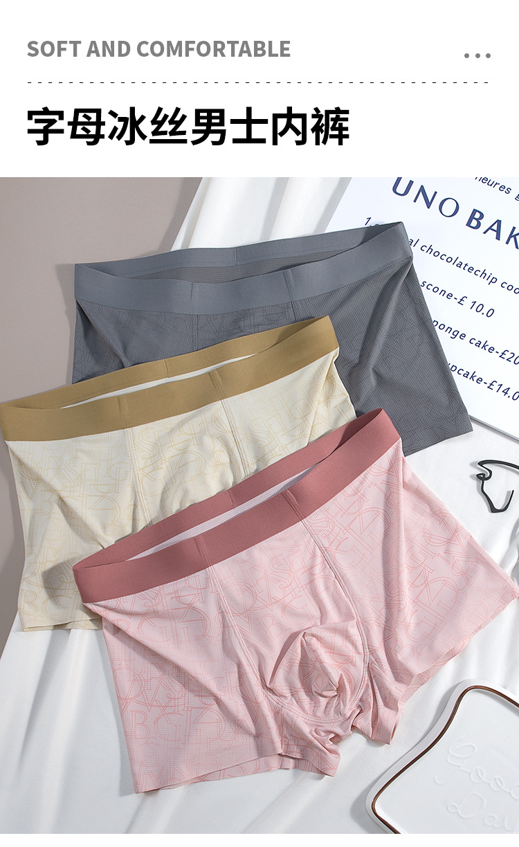 원활한 아이스 실크 남성 속옷 여름 통기성 메쉬 인쇄 새 2024 소년 복서 반바지 헤드 복서스토어 가기
