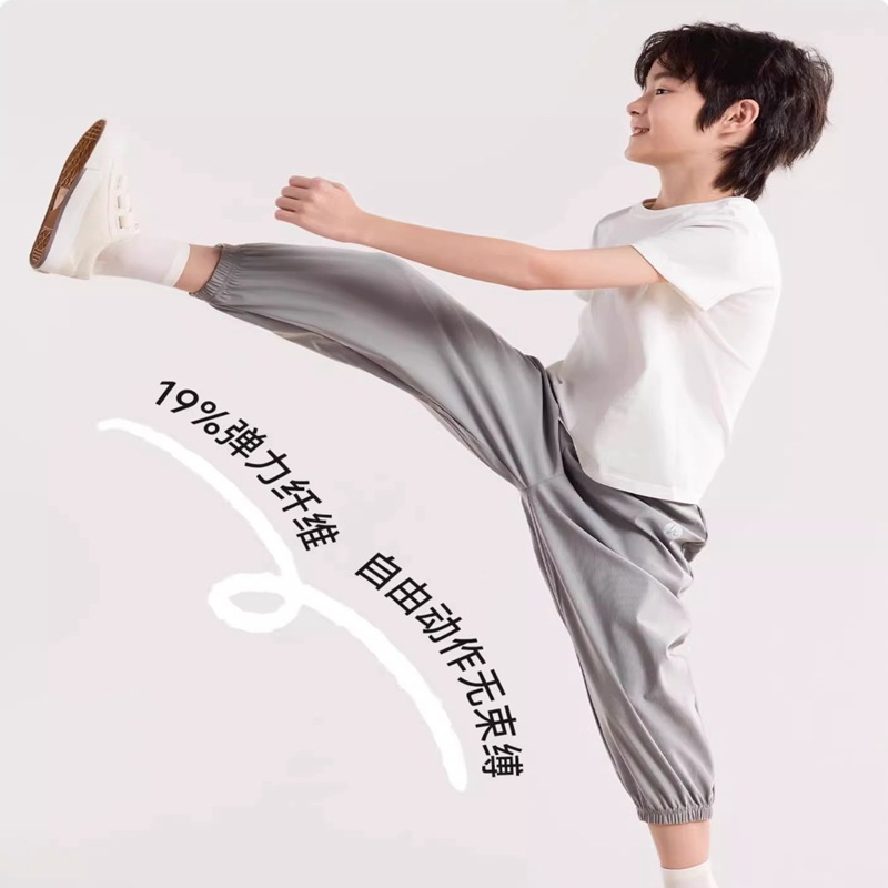 남자와 여자 아이스 실크 바지 중대형 어린이 여름 얇은 통기성 캐주얼 패션 아이스 스트레이트 타이트 바지