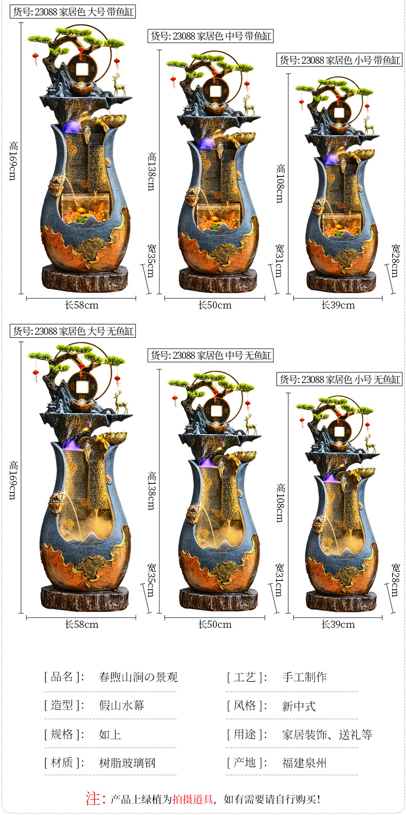 거실용 인공산수 분수 순환수 경관 사무실 정원 가습 어항 집들이 선물 장식품 풍수