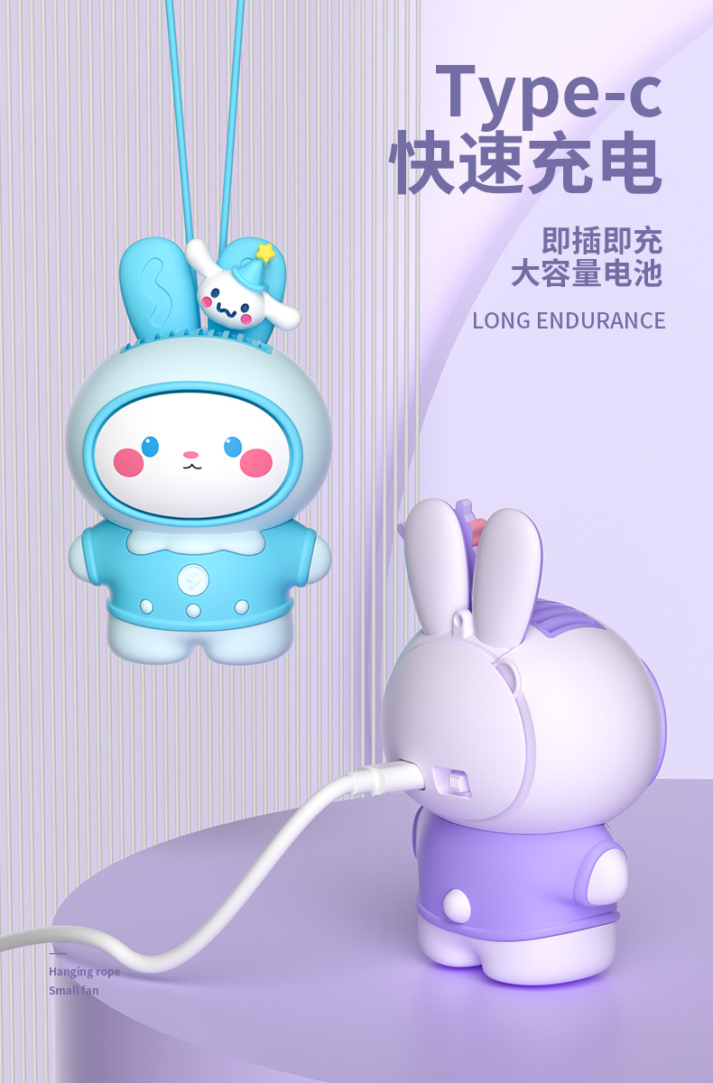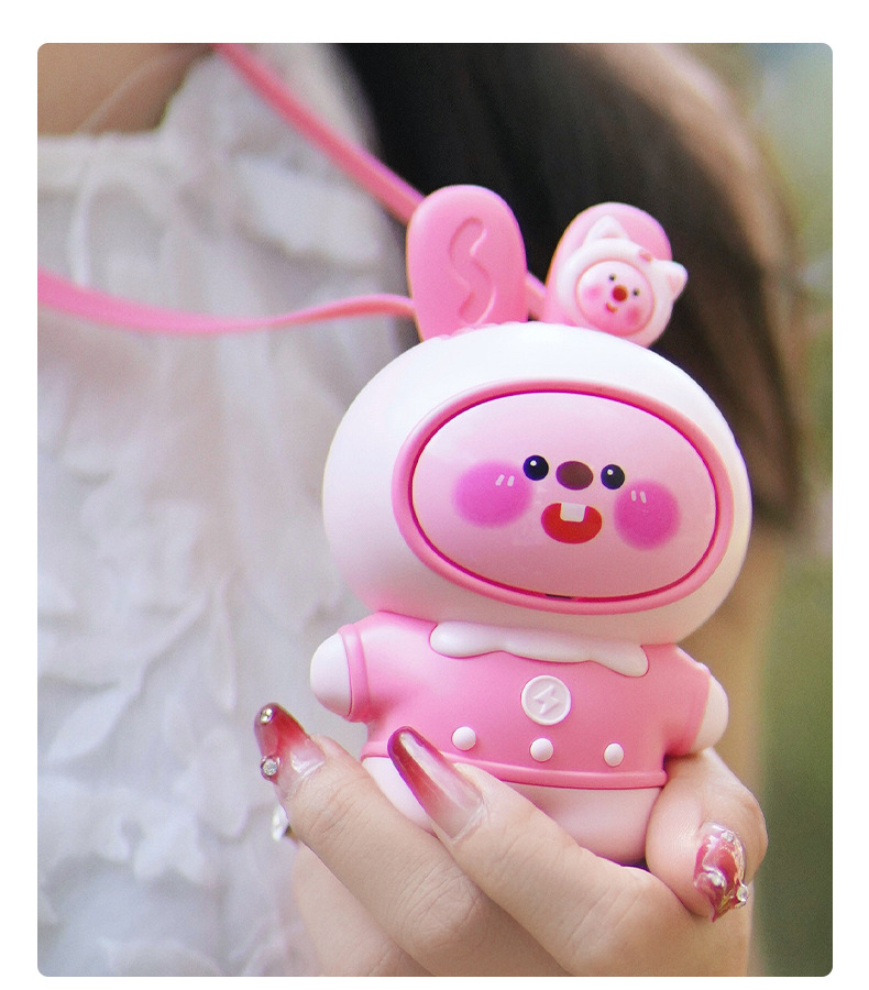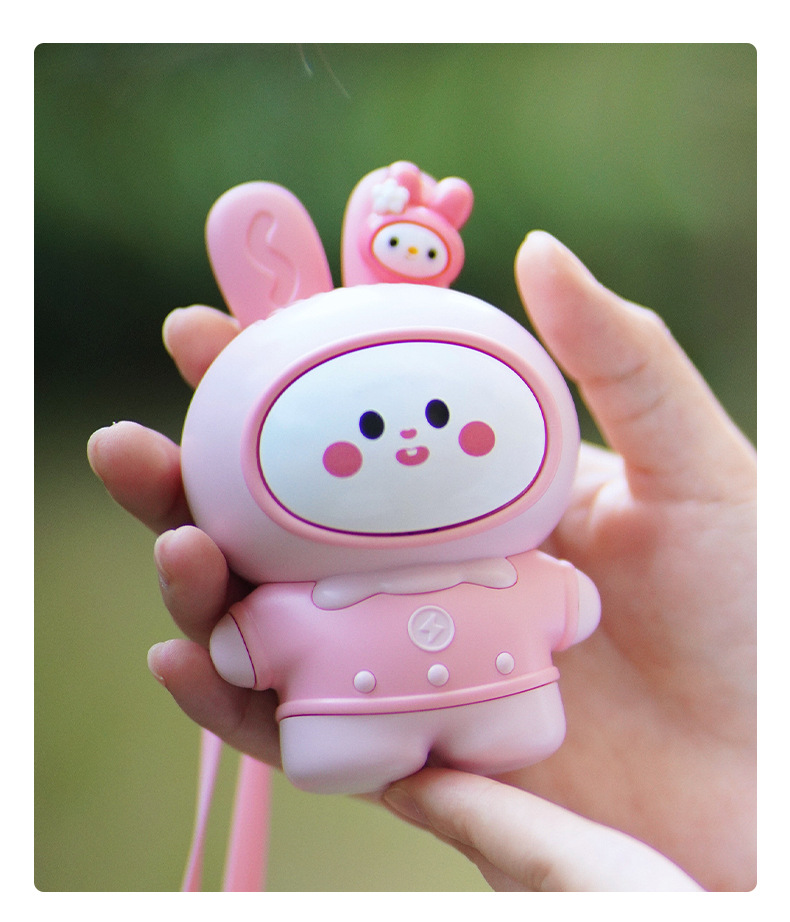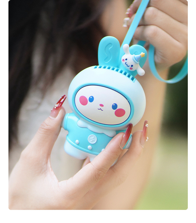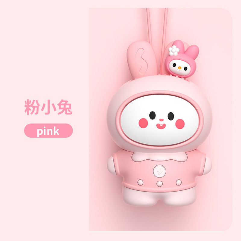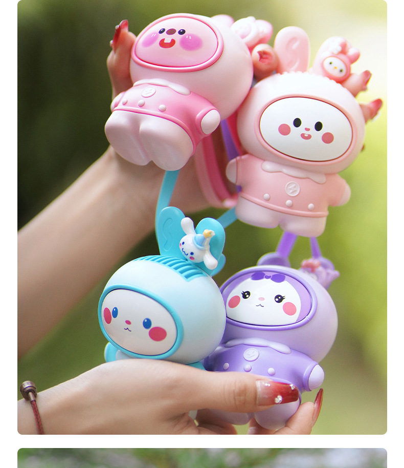 새로운 토끼 귀여운 고삐 작은 팬 어린이 학생 휴대용 USB 충전식 핸드 헬드 팬 미니 팬