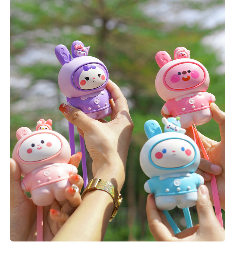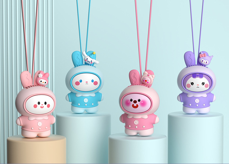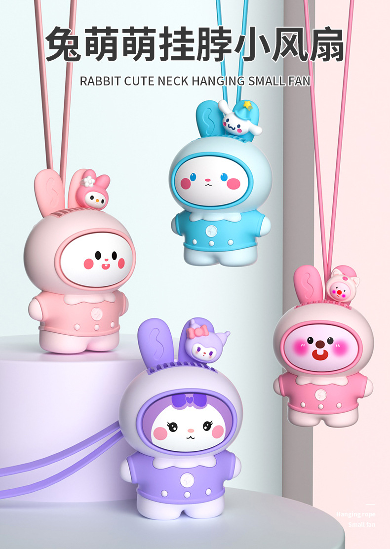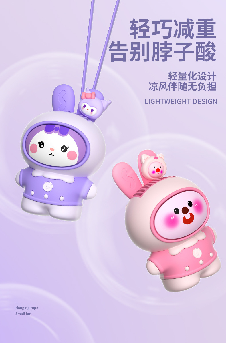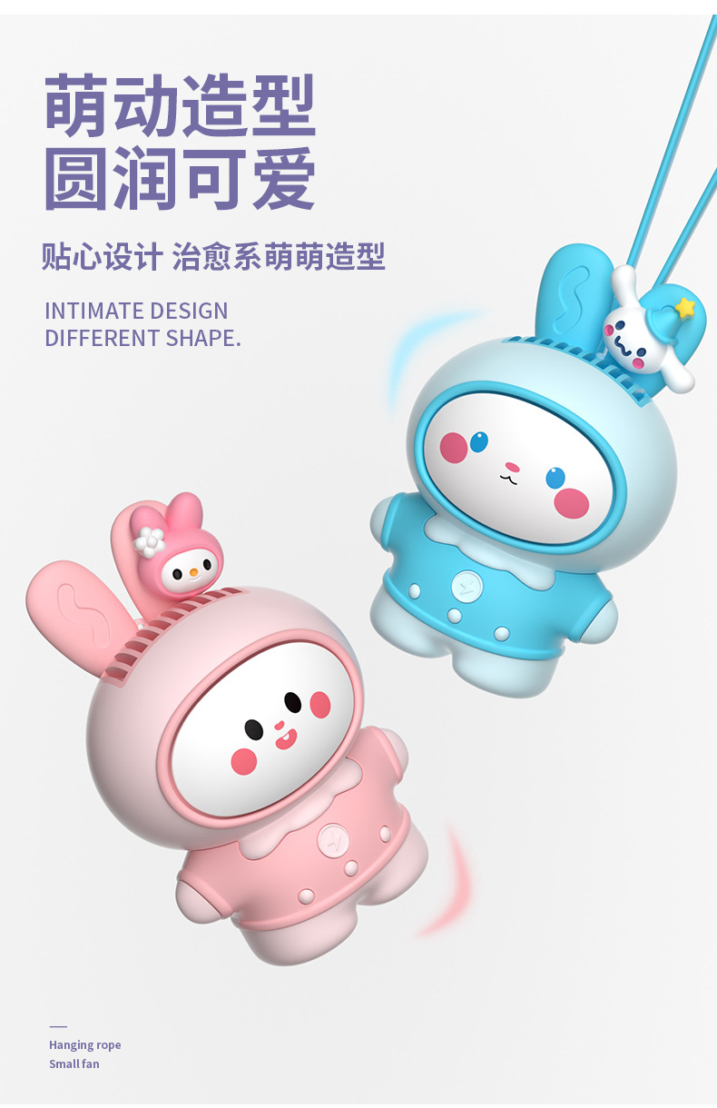 새로운 토끼 귀여운 고삐 작은 팬 어린이 학생 휴대용 USB 충전식 핸드 헬드 팬 미니 팬