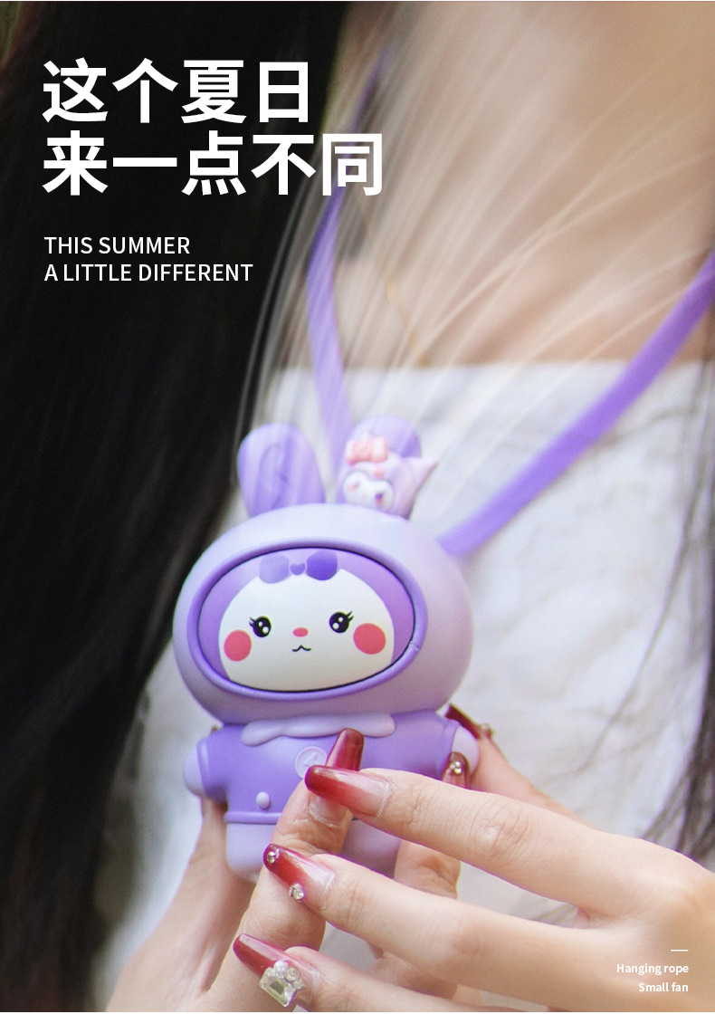 새로운 토끼 귀여운 고삐 작은 팬 어린이 학생 휴대용 USB 충전식 핸드 헬드 팬 미니 팬스토어 가기