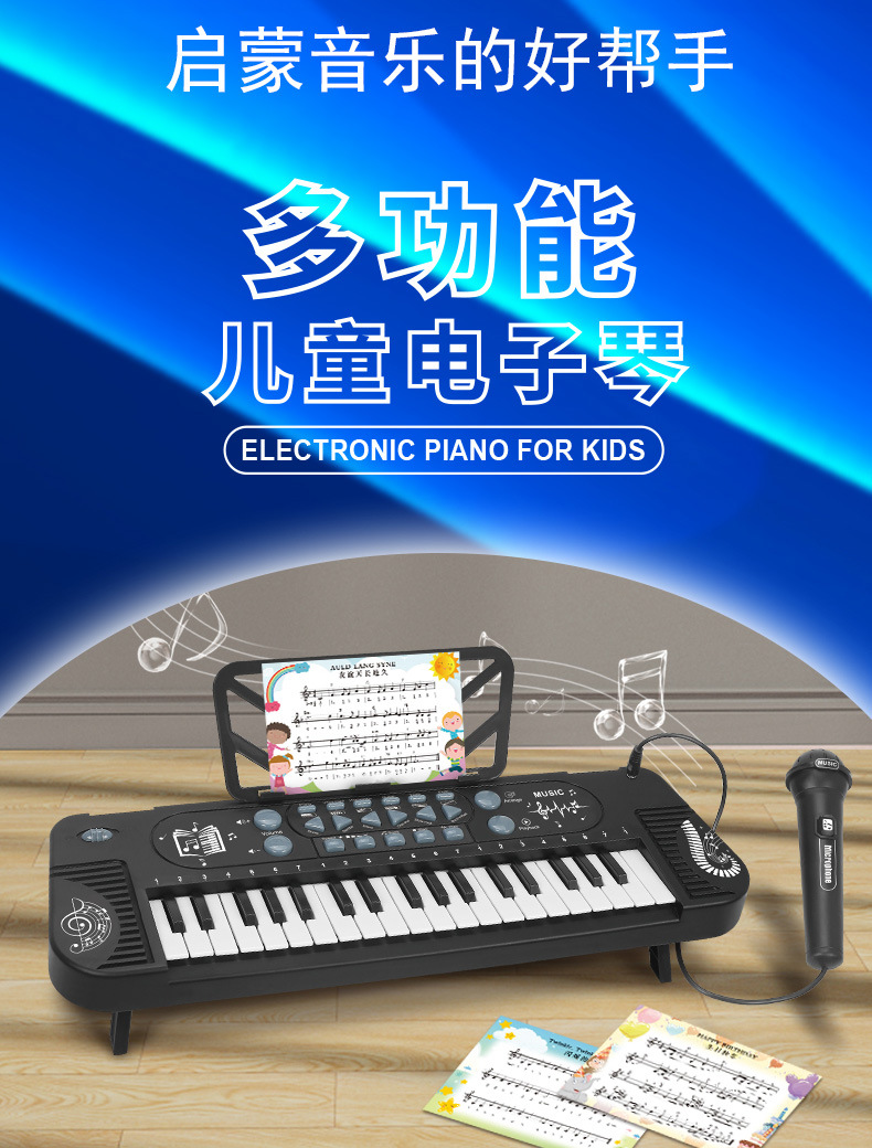 어린이를위한 마이크와 국경 간 엔트리 레벨 다기능 37 키 전자 오르간 음악 장난감 시뮬레이션 악기스토어 가기
