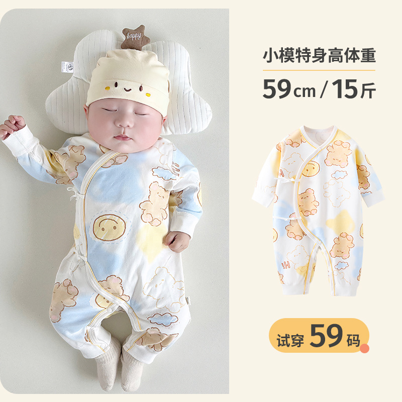 신생아 점프 수트의 엄격한 선택 봄과 여름 순수한면 뼈없는 카카 옷 아기 나비 옷 0-6 개월 된 카카 옷스토어 가기