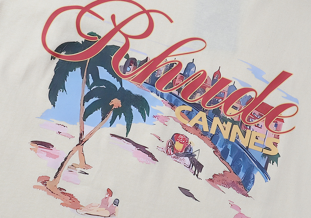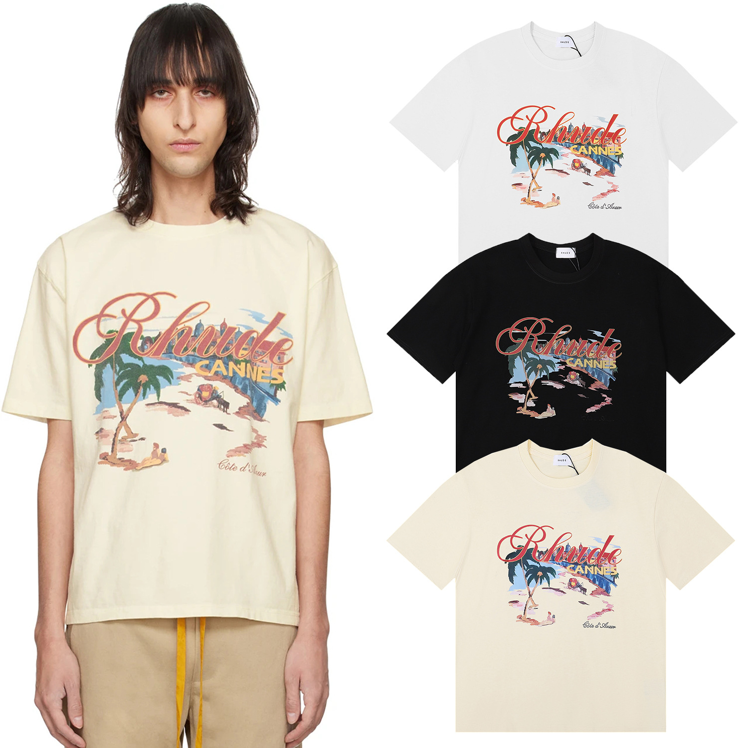 2024 여름 새로운 패션 루드 비치 코코넛 프린트 원사 면화 캐주얼 반팔 티셔츠 남성과 여성스토어 가기