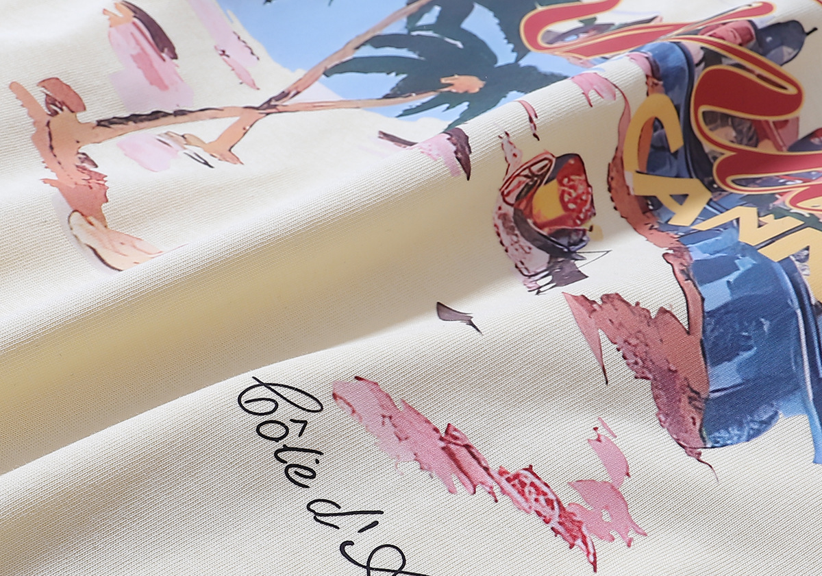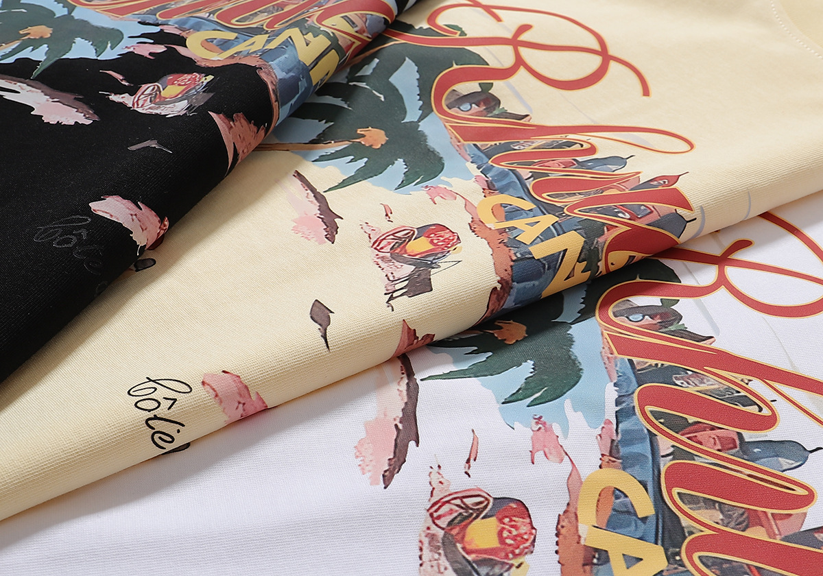 2024 여름 새로운 패션 루드 비치 코코넛 프린트 원사 면화 캐주얼 반팔 티셔츠 남성과 여성