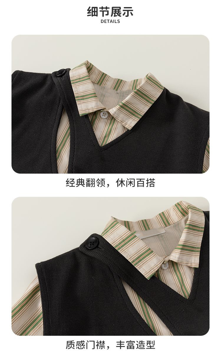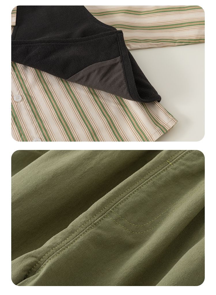 • 검은색 조끼 + 녹색 줄무늬 셔츠 투피스 세트
