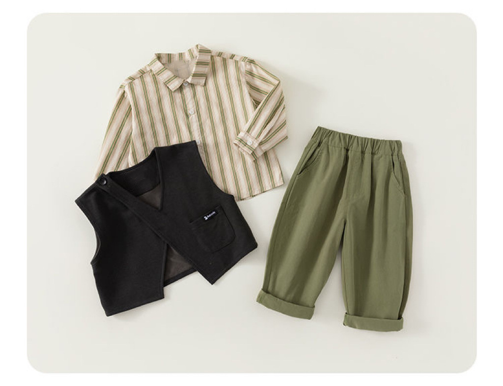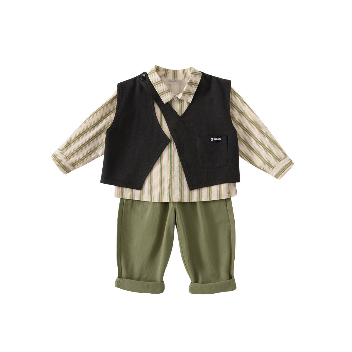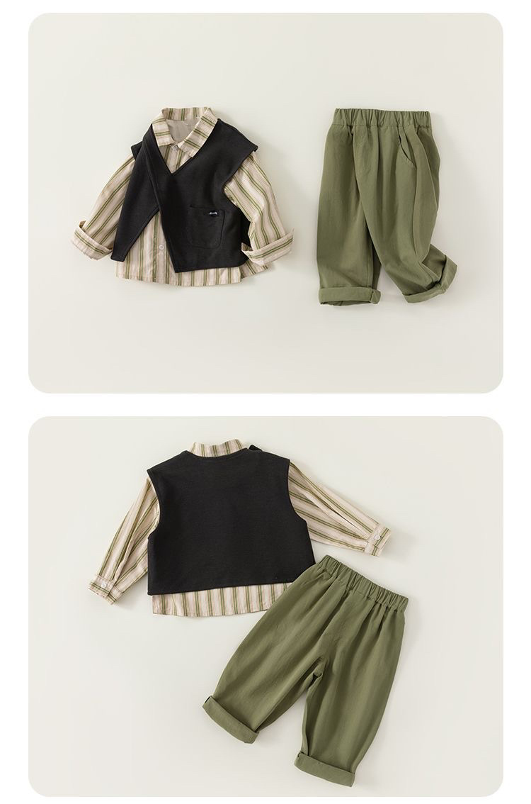 소년의 봄 세트 2025 새로운 중소 소년 아기 조끼 3 피스 세트 아기의 봄과 가을 패션