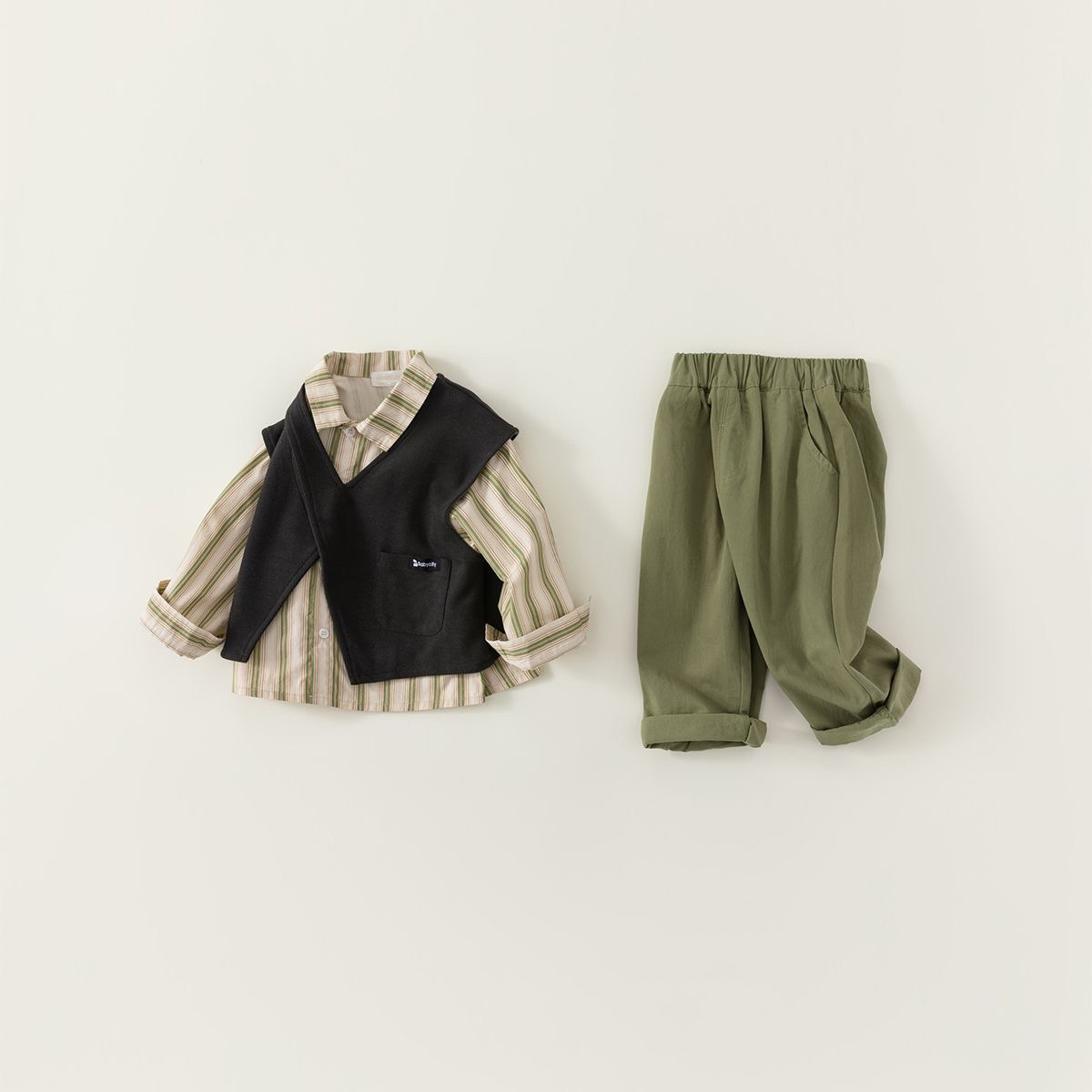 • 검은색 조끼+녹색바지+녹색줄무늬 셔츠 3종세트