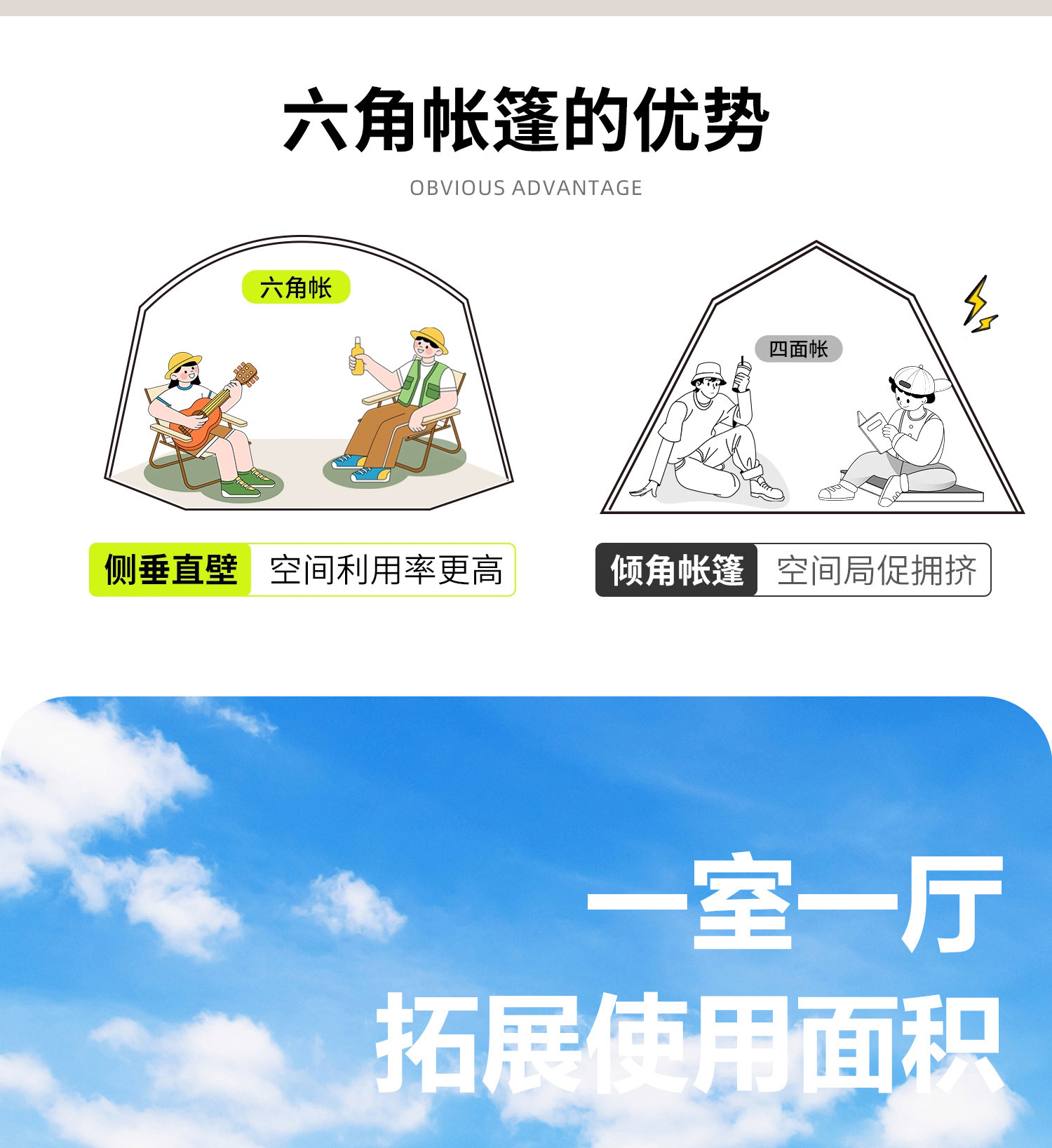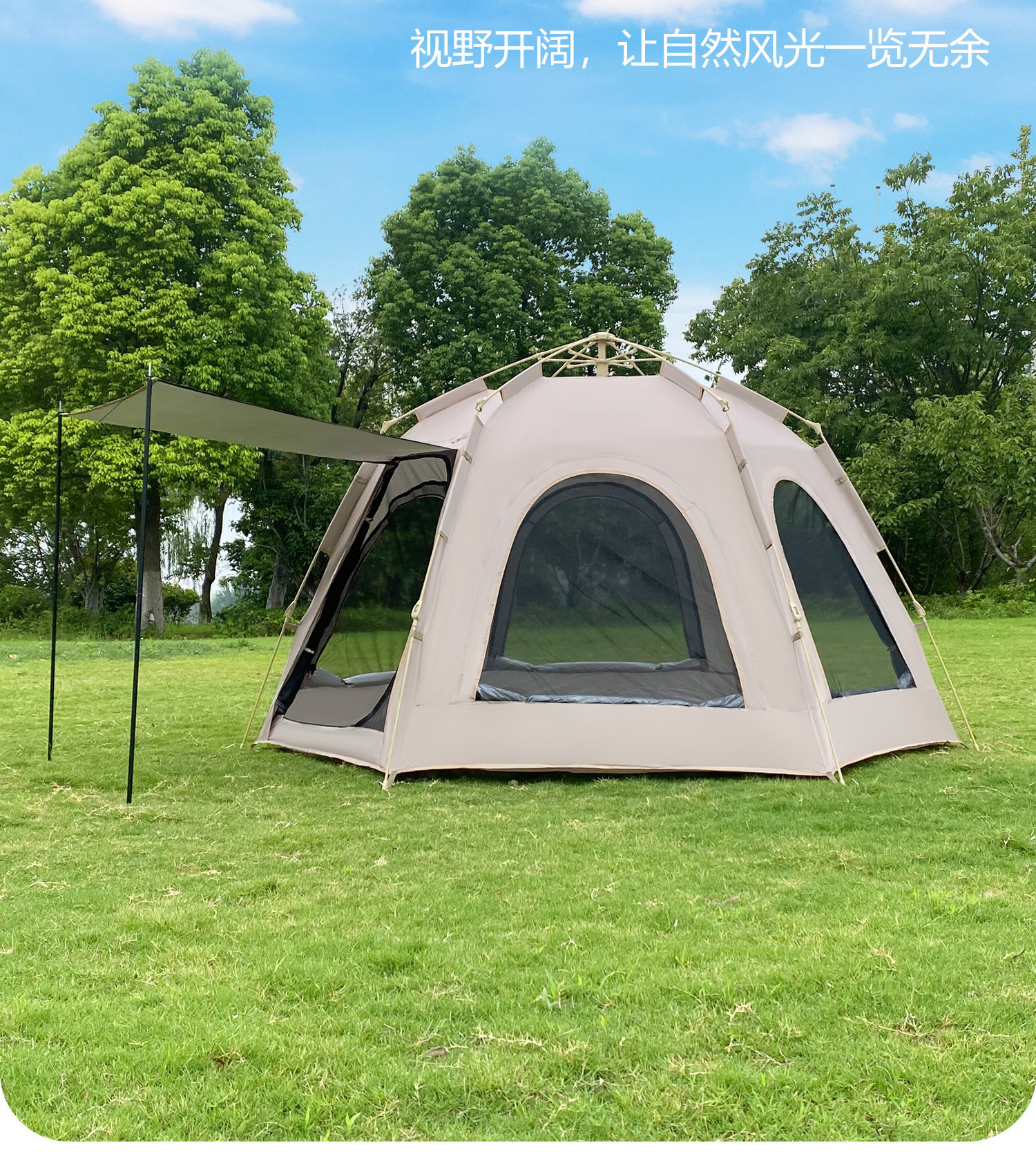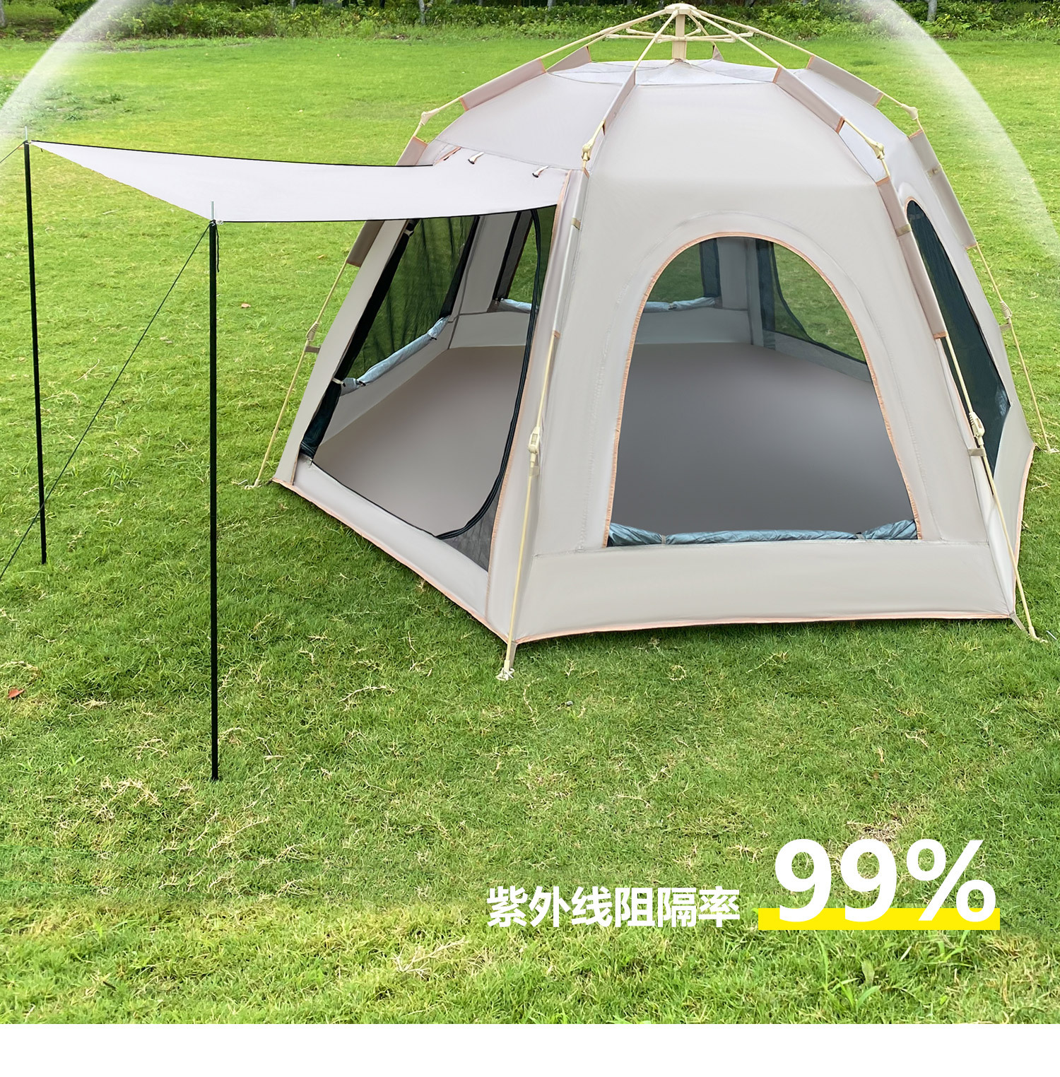야외 캠핑 텐트 두꺼운 휴대용 접이식 빠른 열기 자동 피크닉 태양 보호 캠핑 육각형 텐트 소스 제품스토어 가기