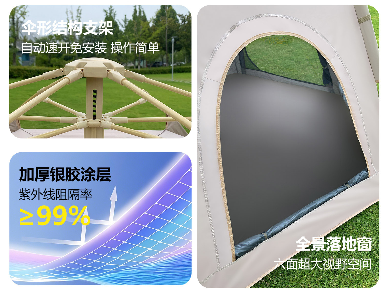 야외 캠핑 텐트 두꺼운 휴대용 접이식 빠른 열기 자동 피크닉 태양 보호 캠핑 육각형 텐트 소스 제품