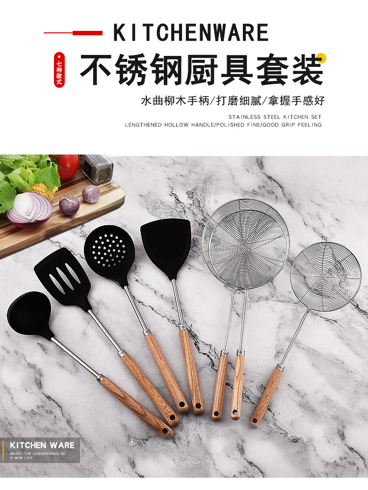 가정용 요리, 수프 쉘, 주걱, 수프 스푼, 냄비 소쿠리용 맞춤형 두꺼운 실리콘 나무 손잡이 주걱 세트스토어 가기