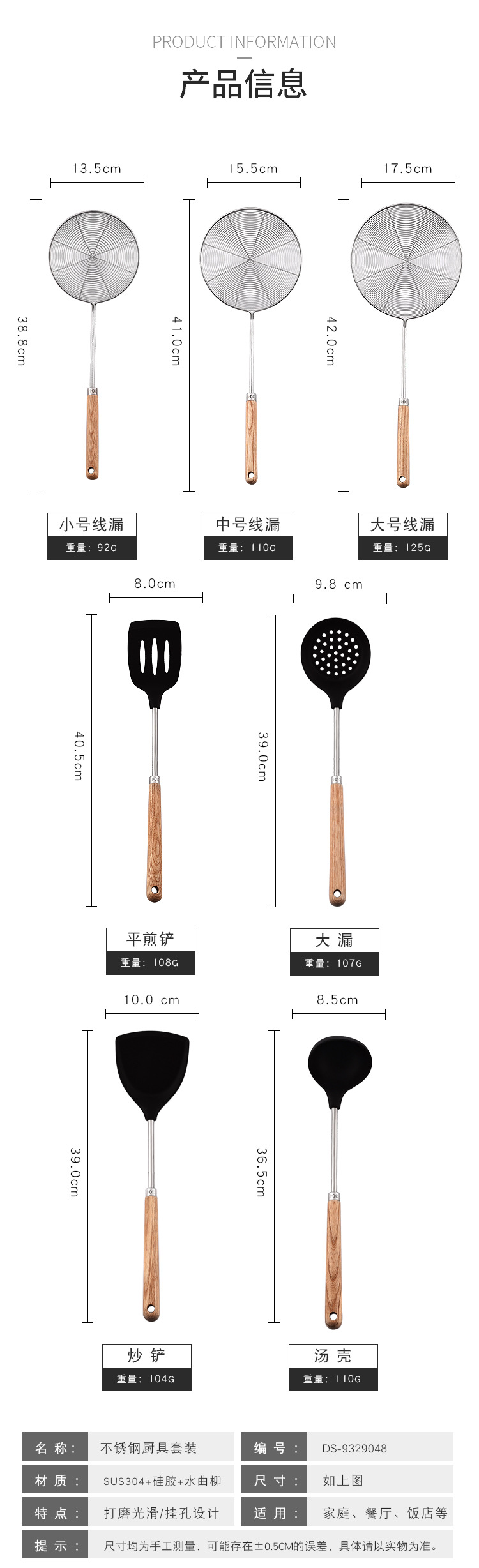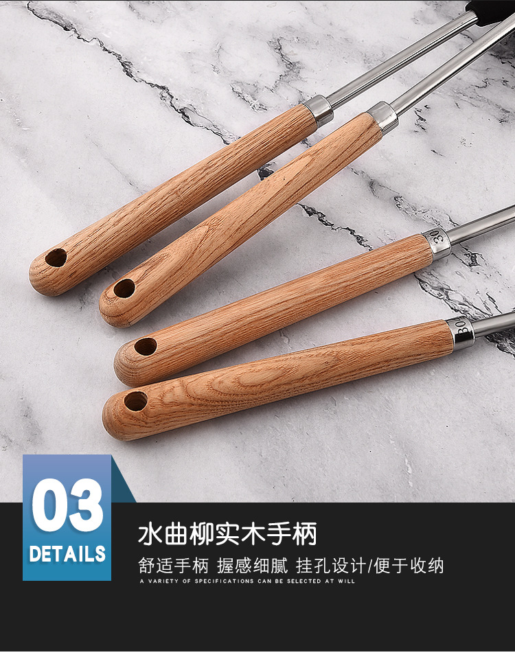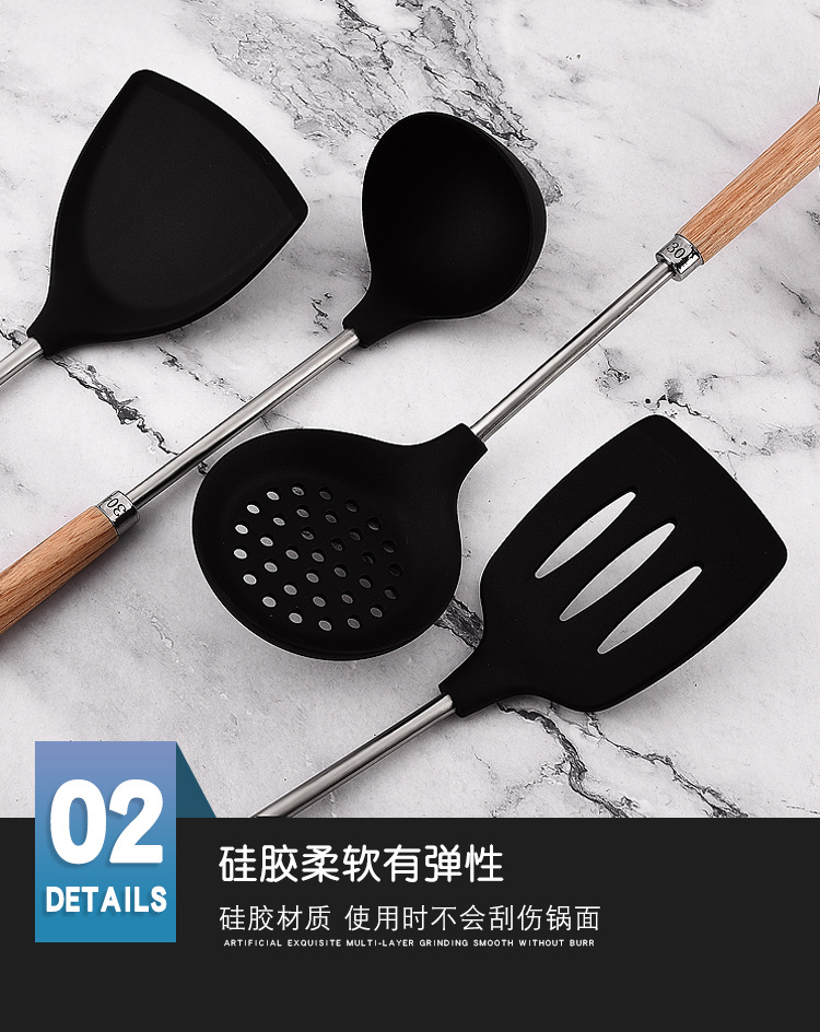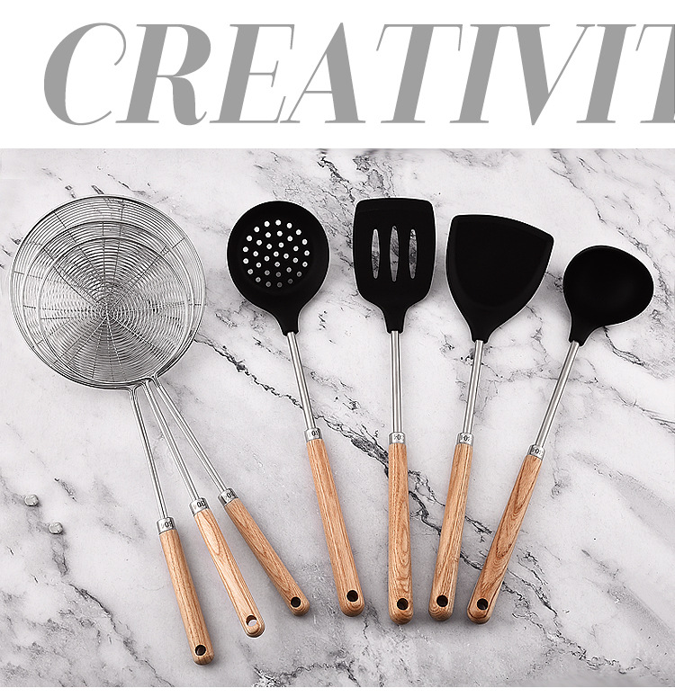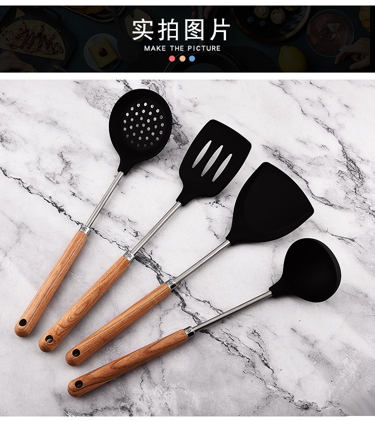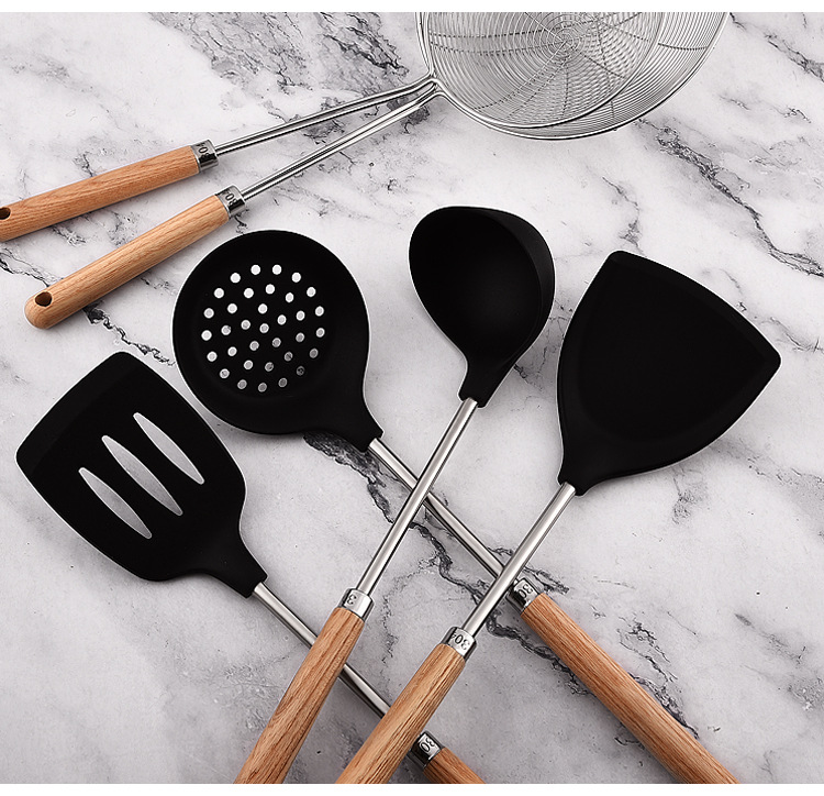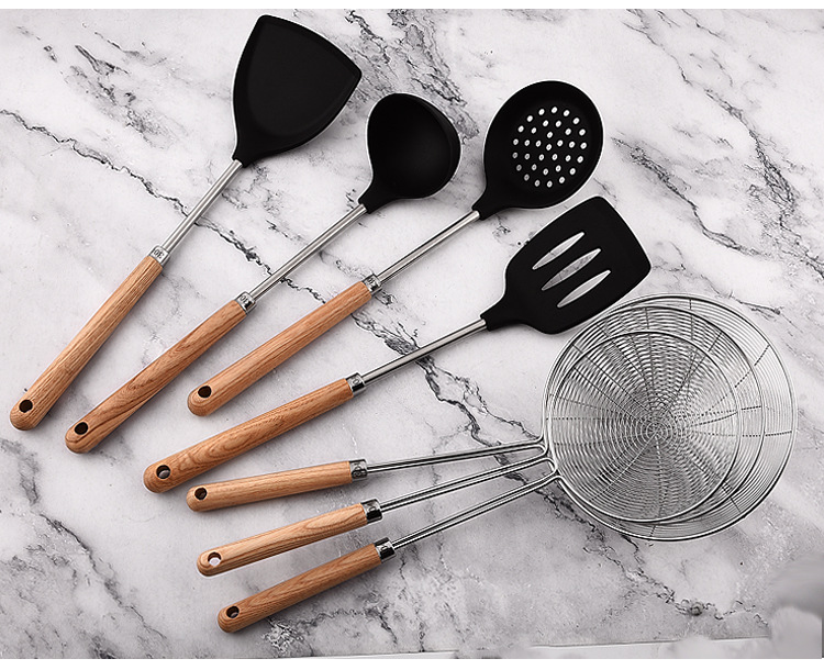 가정용 요리, 수프 쉘, 주걱, 수프 스푼, 냄비 소쿠리용 맞춤형 두꺼운 실리콘 나무 손잡이 주걱 세트