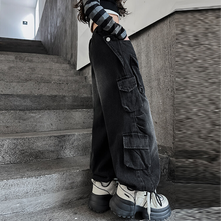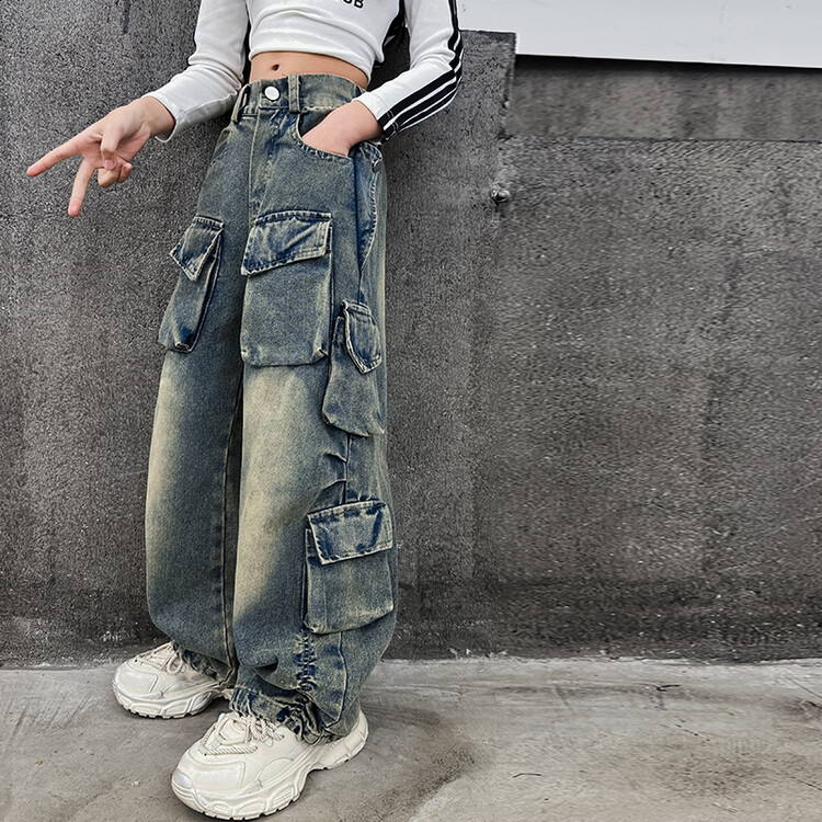 소녀 청바지 봄과 가을 2024 새로운 바지 서양식 한국 스타일의 느슨한 넓은 다리 바지 어린이 바지스토어 가기