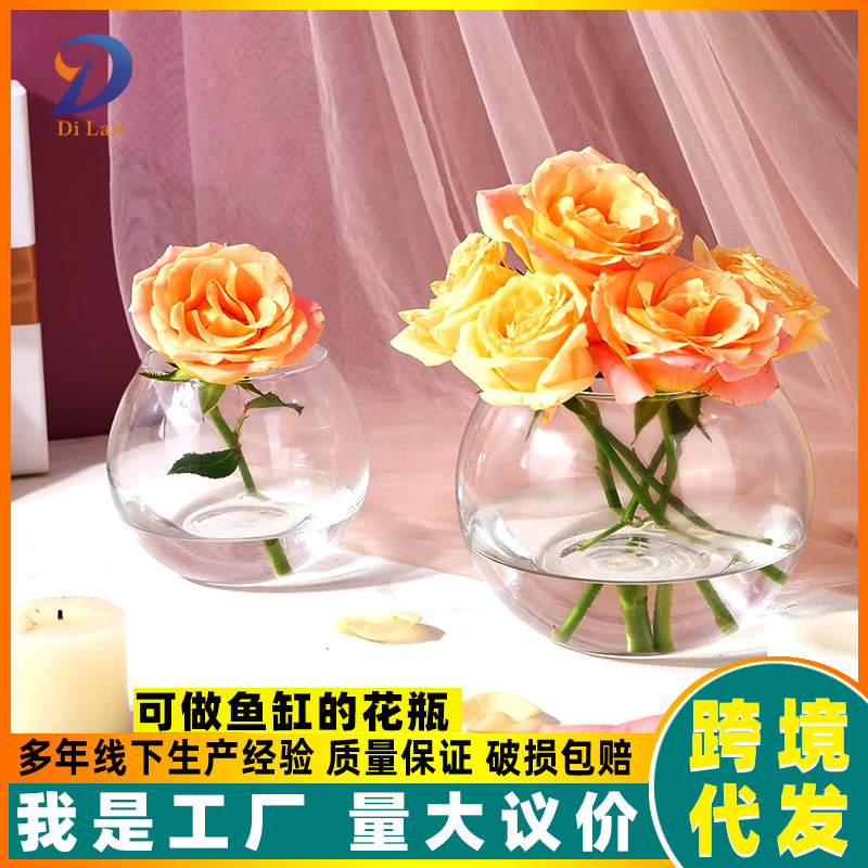 유리 꽃병 투명 물 재배 녹색 무 화분 생태 어항 컨테이너 거실 사무실 장식 도매스토어 가기