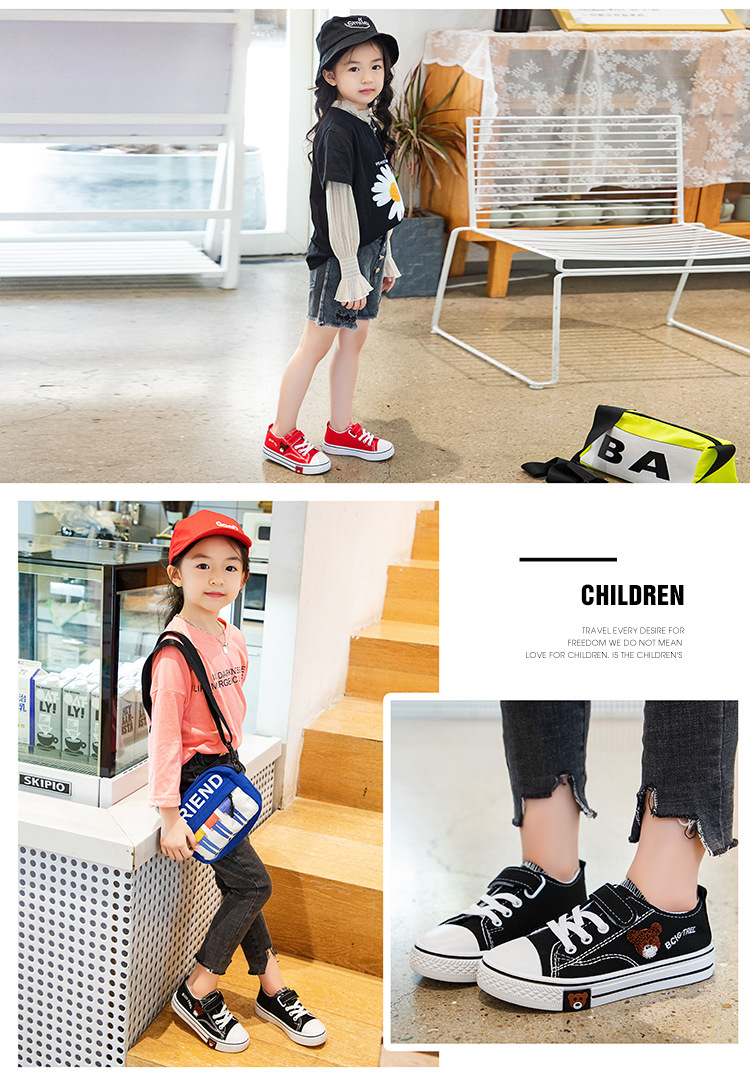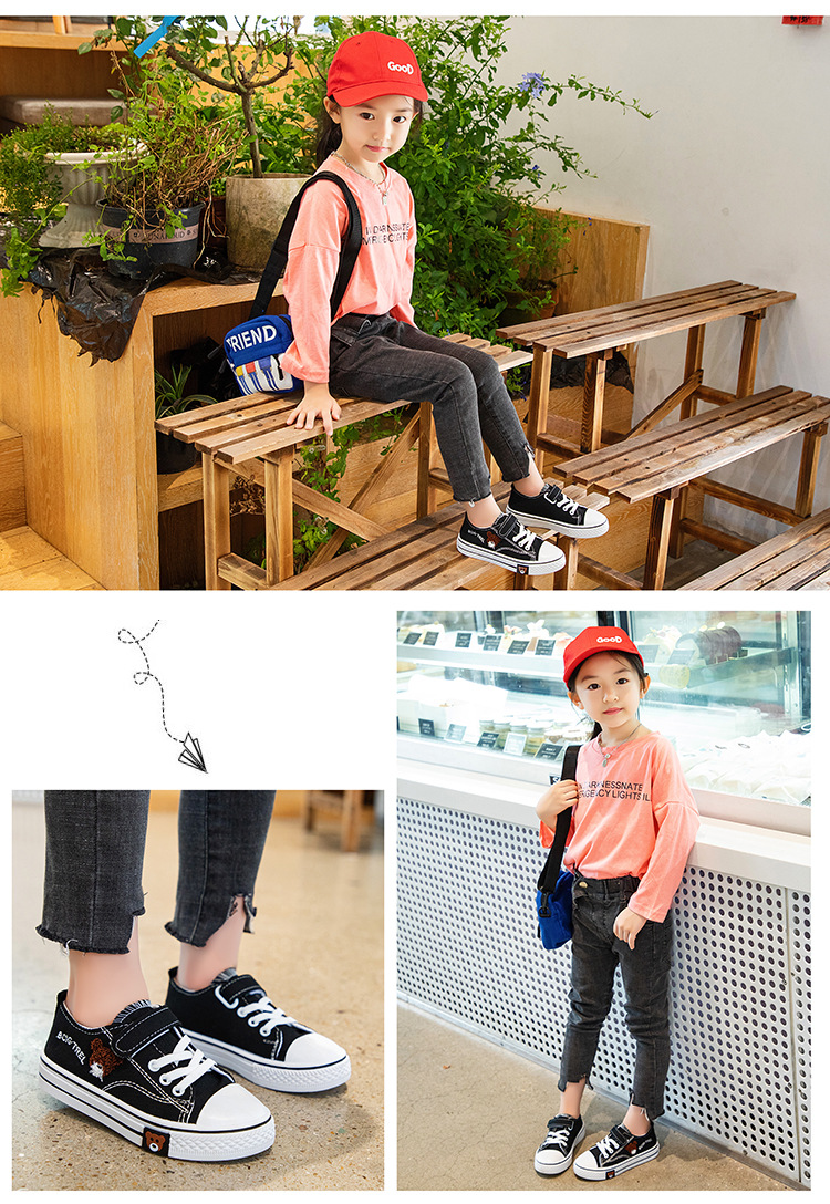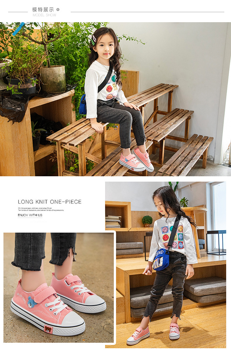 어린이 캔버스 신발 소년 보드 신발 소녀 신발 2024 봄과 가을 새로운 사계절 벨크로 아동용 신발 도매스토어 가기