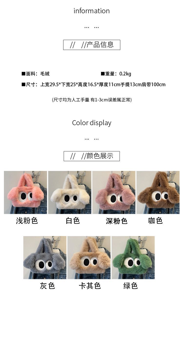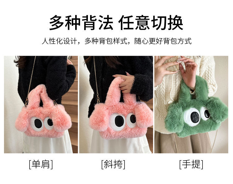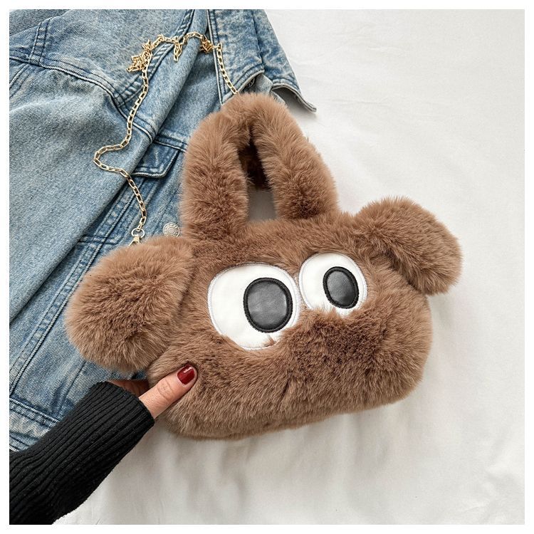 봉제 여성 가방 귀여운 큰 눈 개 체인 가방 새로운 봄 토트 백 큰 눈 봉제 가방 단일 어깨 크로스 바디 백스토어 가기