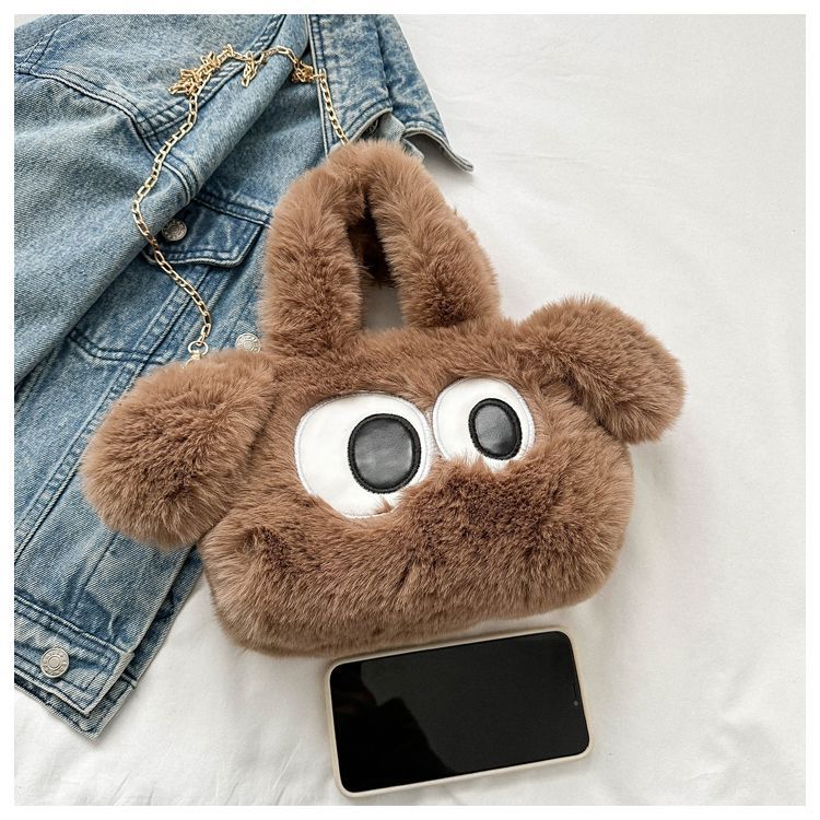 봉제 여성 가방 귀여운 큰 눈 개 체인 가방 새로운 봄 토트 백 큰 눈 봉제 가방 단일 어깨 크로스 바디 백