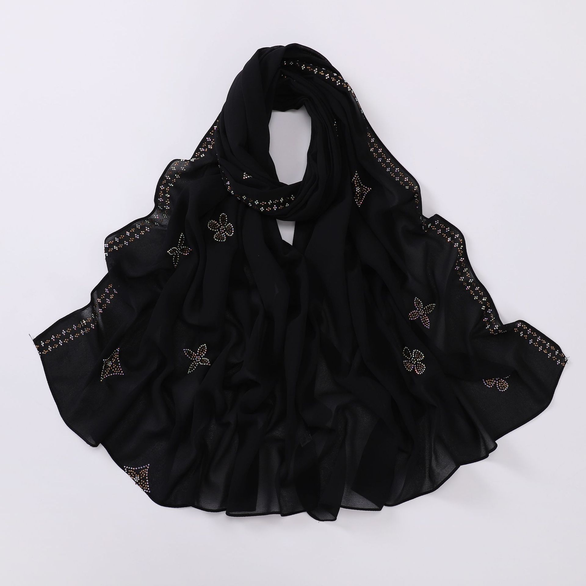 뉴 크로스 보더 펄 쉬폰 4 잎 클로버 핫 드릴링 스카프 후이 스카프 말레이시아 헤드 밴드 중동 히잡스토어 가기