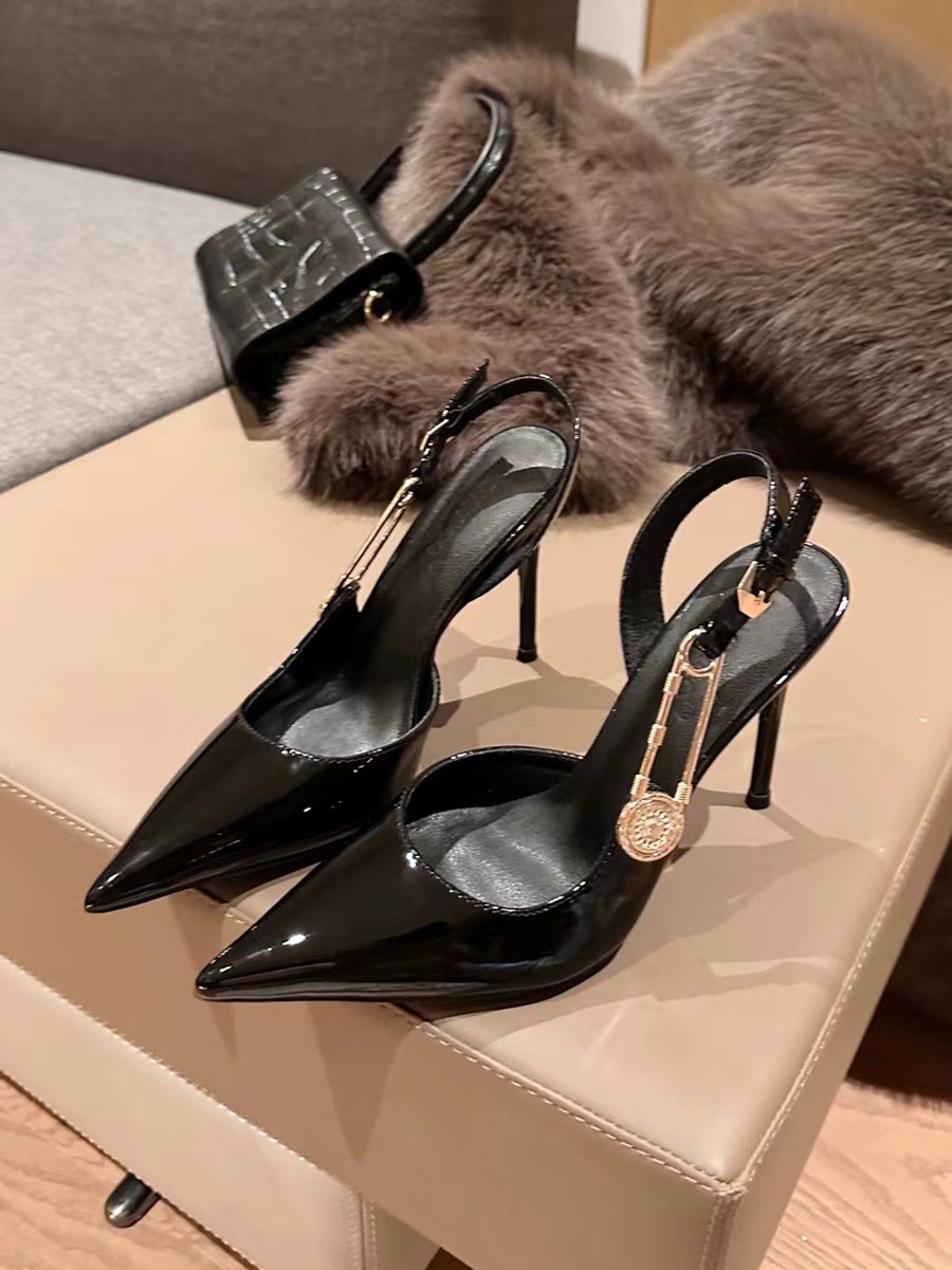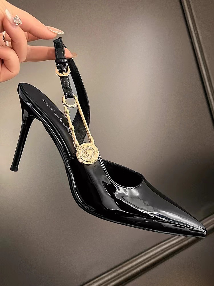 블랙 하이힐 여성용 스틸레토 힐 2024 여름 새로운 섹시한 뾰족한 발가락 단어 프랑스어 닫힌 발가락 샌들 빈 싱글 레이어 신발스토어 가기