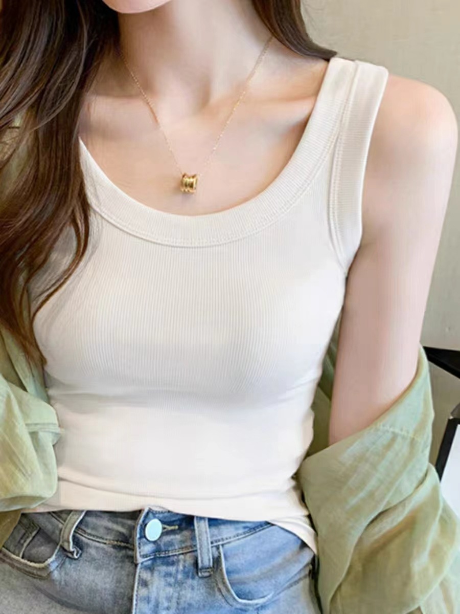여름 넓은 어깨 끈 나사면을 덮는 Daifa 여성용 조끼 새로운면 가슴 여성 의복 조끼 내복 노출 방지스토어 가기