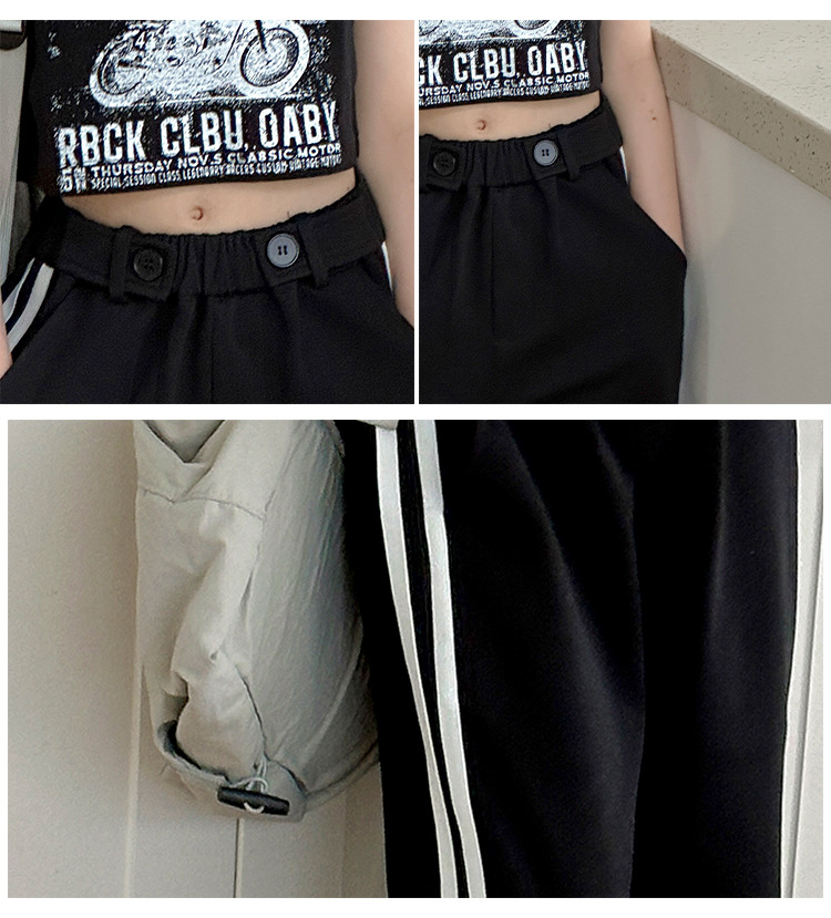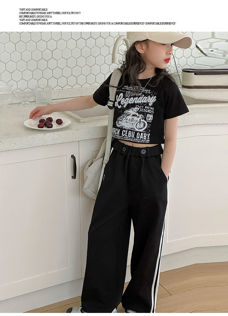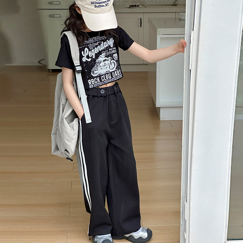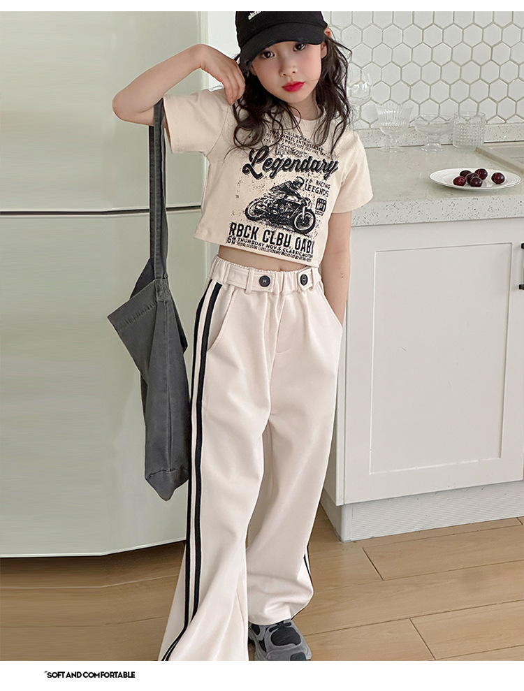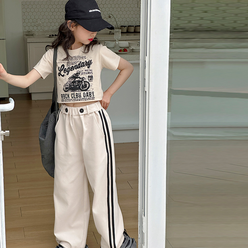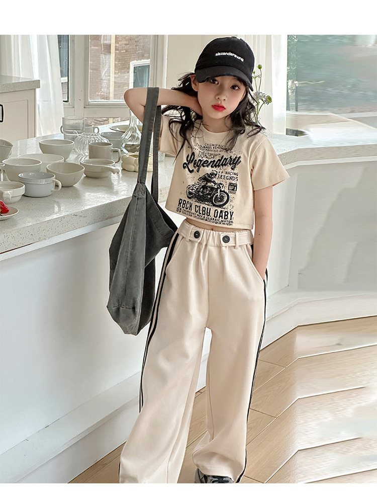 소녀 여름 스포츠 세트 2024 여름 새로운 미디어와 큰 아이들 유행 반팔 티셔츠 바지 투피스 세트