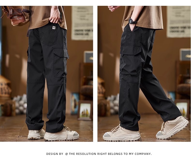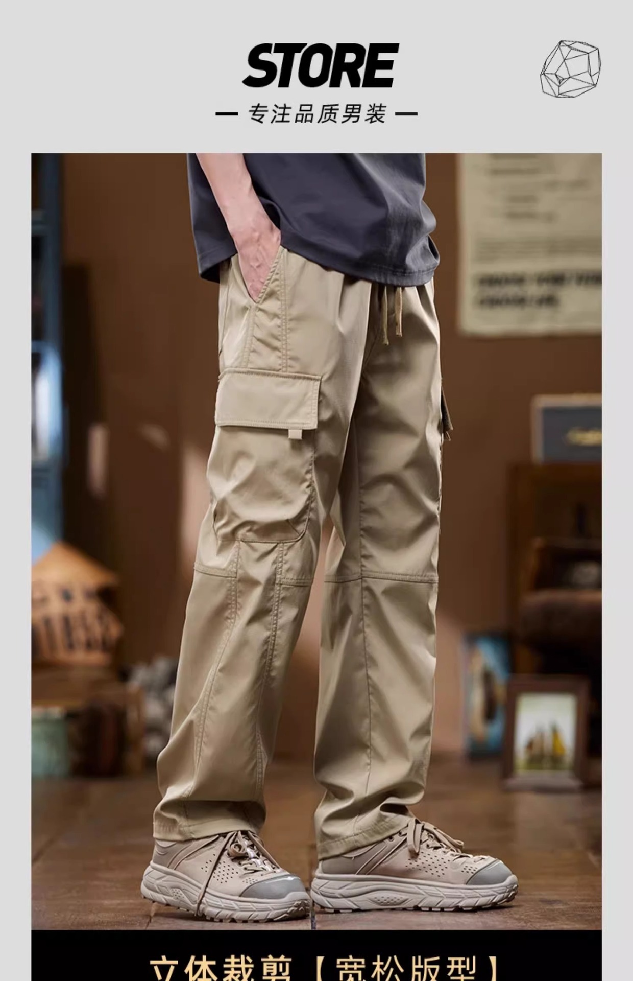 미국 스타일의 트렌디 한 브랜드화물 바지 남성 봄과 가을 느슨한 스트레이트 와이드 다리 바지 2024 트렌디 한 바지스토어 가기