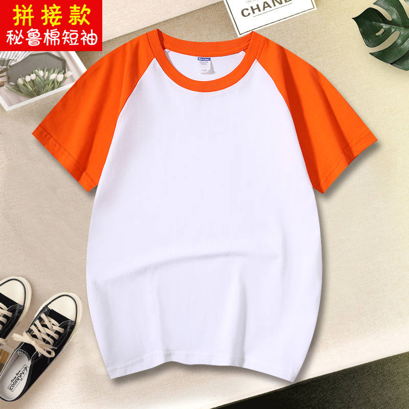 어린이 순면 래글런 반팔 맞춤형 배색 티셔츠 초등학생 유치원 교복 프린트 티셔츠 부모 자녀 세트