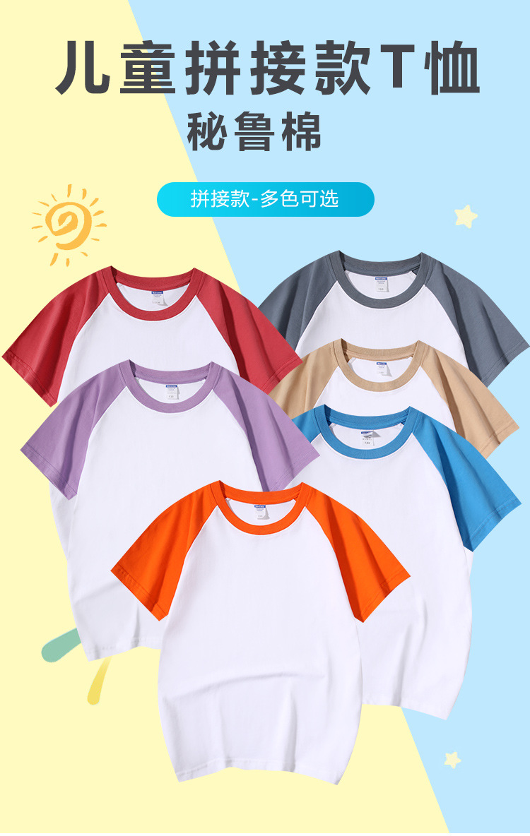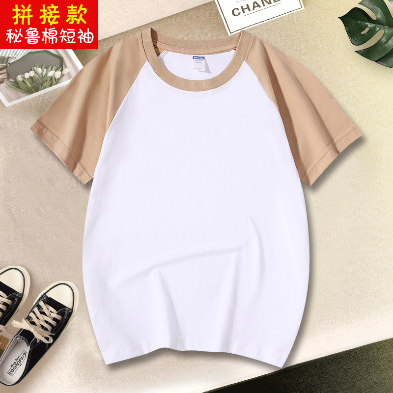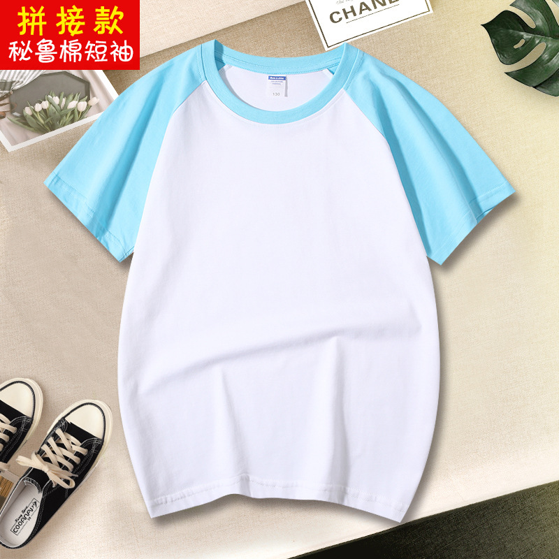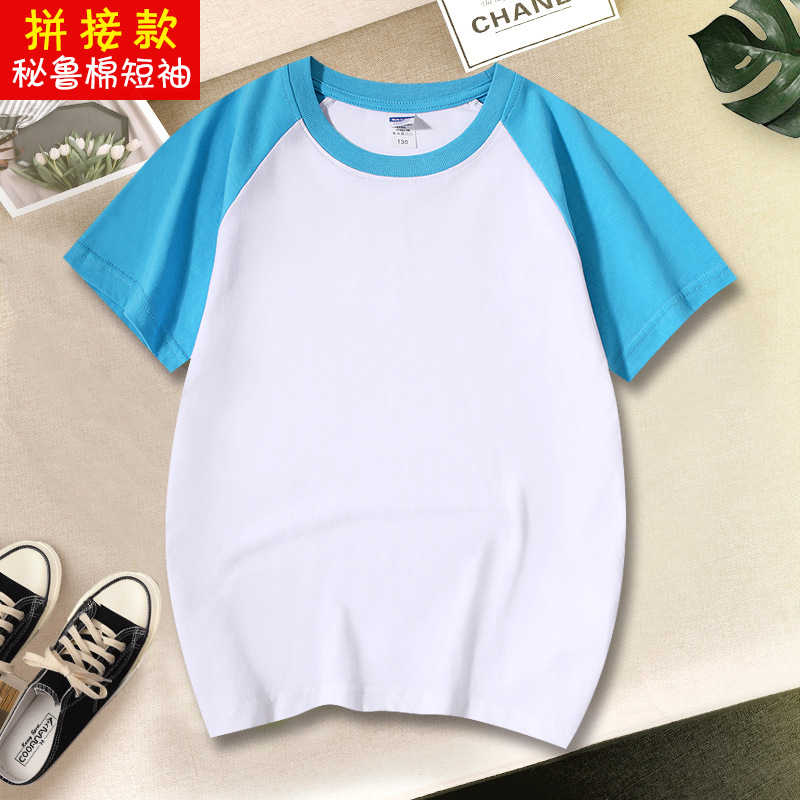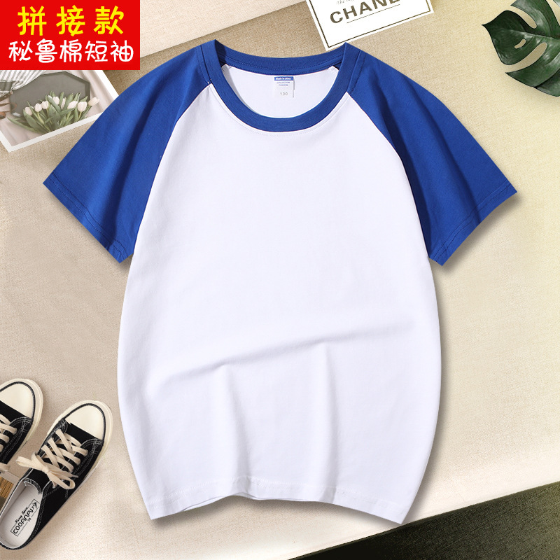 어린이 순면 래글런 반팔 맞춤형 배색 티셔츠 초등학생 유치원 교복 프린트 티셔츠 부모 자녀 세트스토어 가기