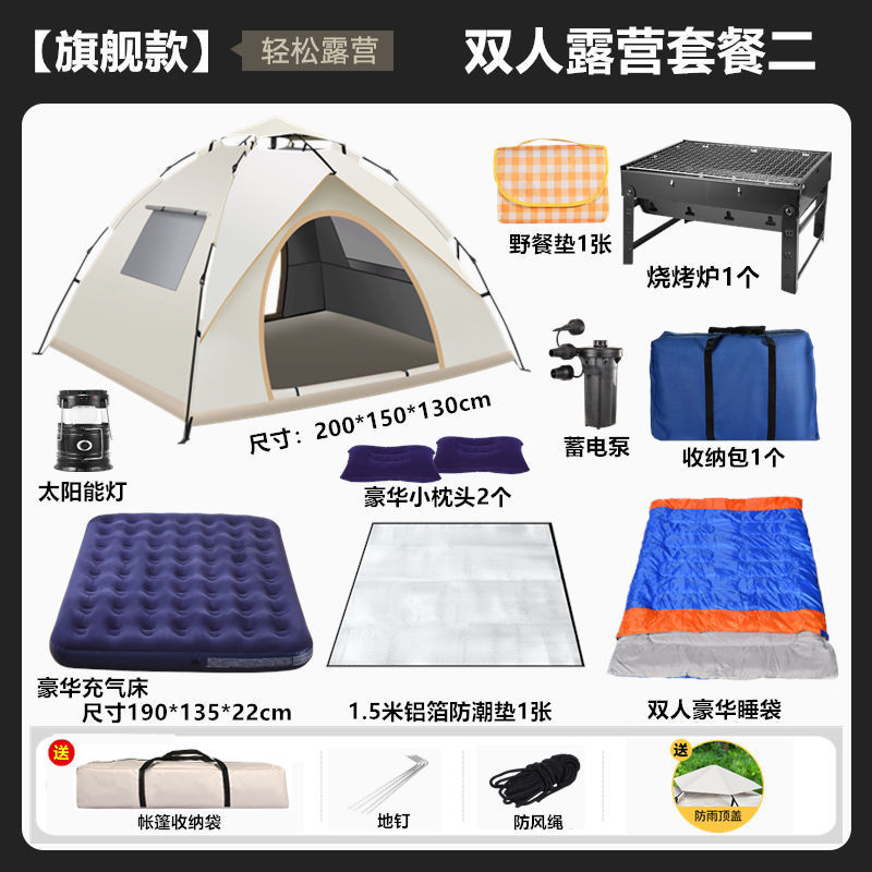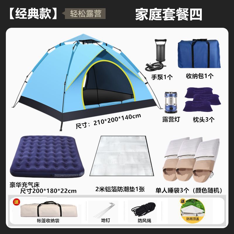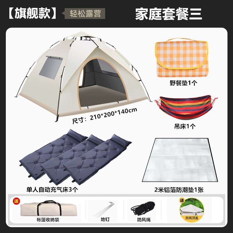 텐트 야외 캠핑 휴대용 접이식 야외 장비 피크닉 캠핑 자동 두꺼운 방수 자외선 차단제 세트