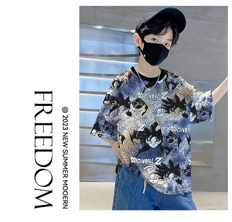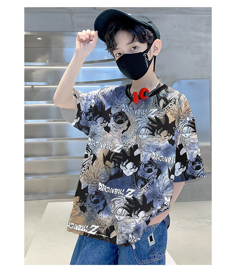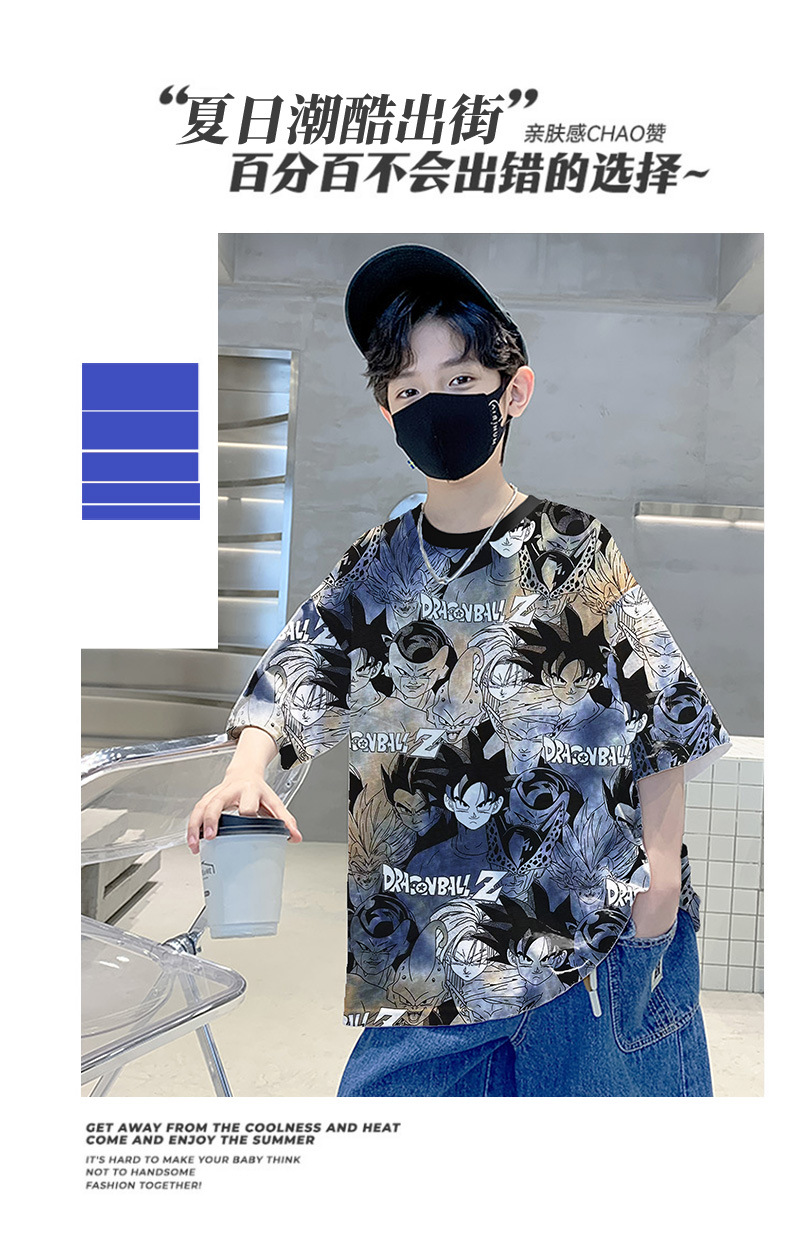 소년 만화 반팔 여름 옷 새로운 2024 새로운 여름 스타일 어린이 반팔 탑 여름 소년 티셔츠 잘 생긴 t스토어 가기