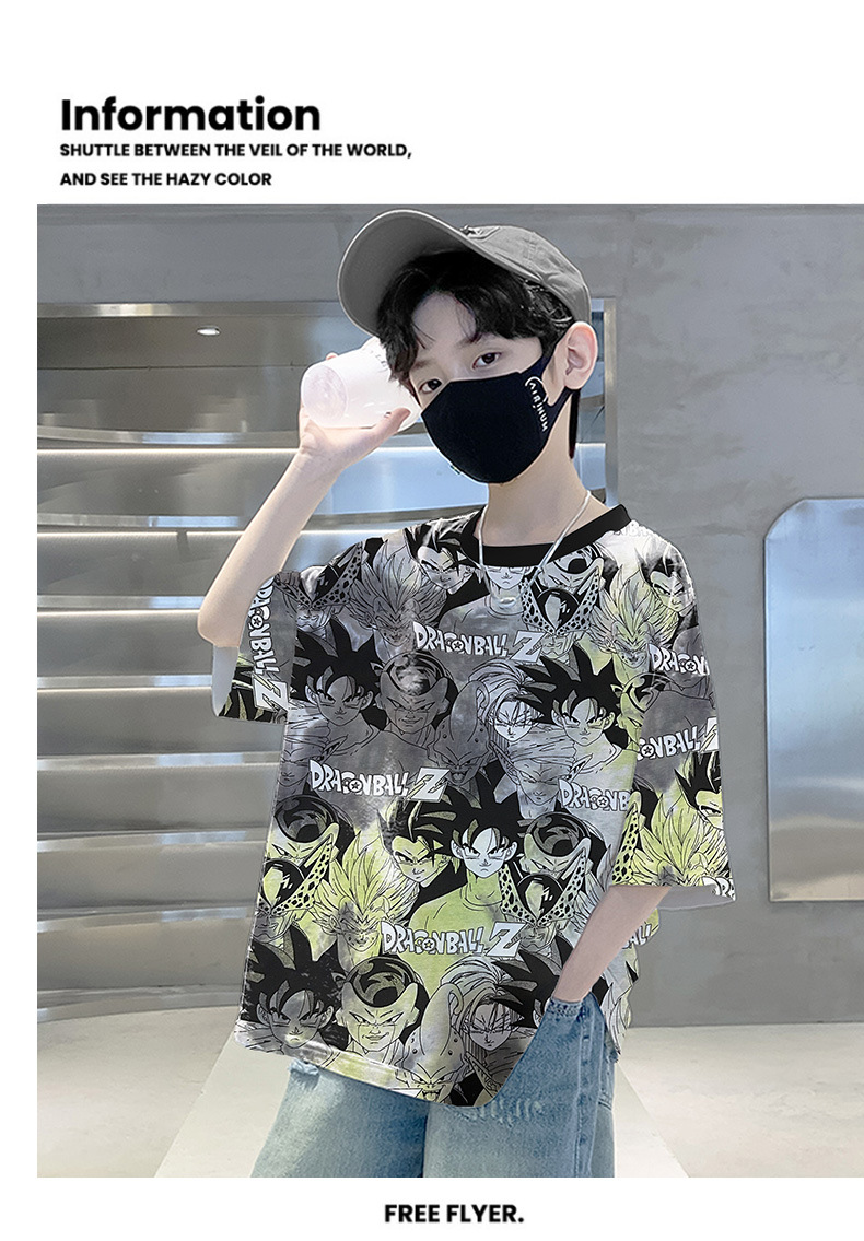 소년 만화 반팔 여름 옷 새로운 2024 새로운 여름 스타일 어린이 반팔 탑 여름 소년 티셔츠 잘 생긴 t