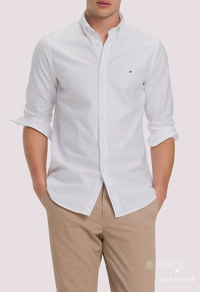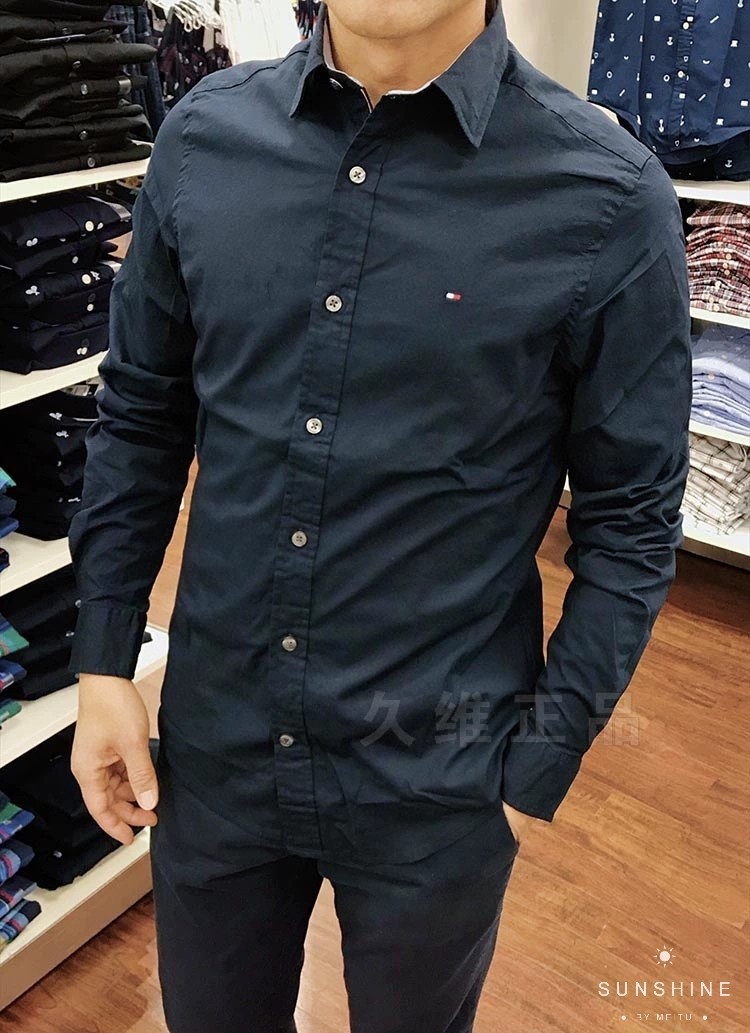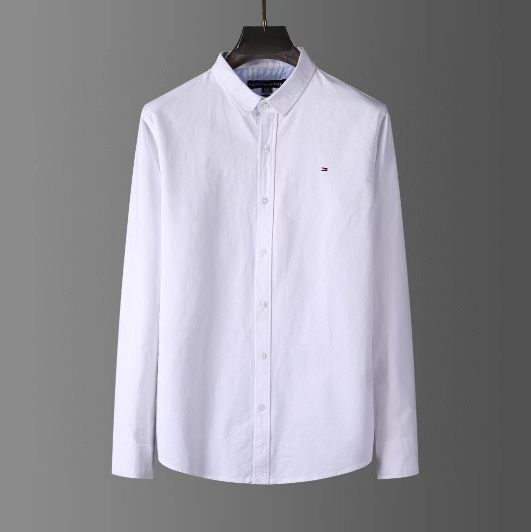 국경 간 재고 여름 토미 옥스포드 남성 자수 비즈니스 맞는 단색 긴 소매 옷깃 셔츠 1