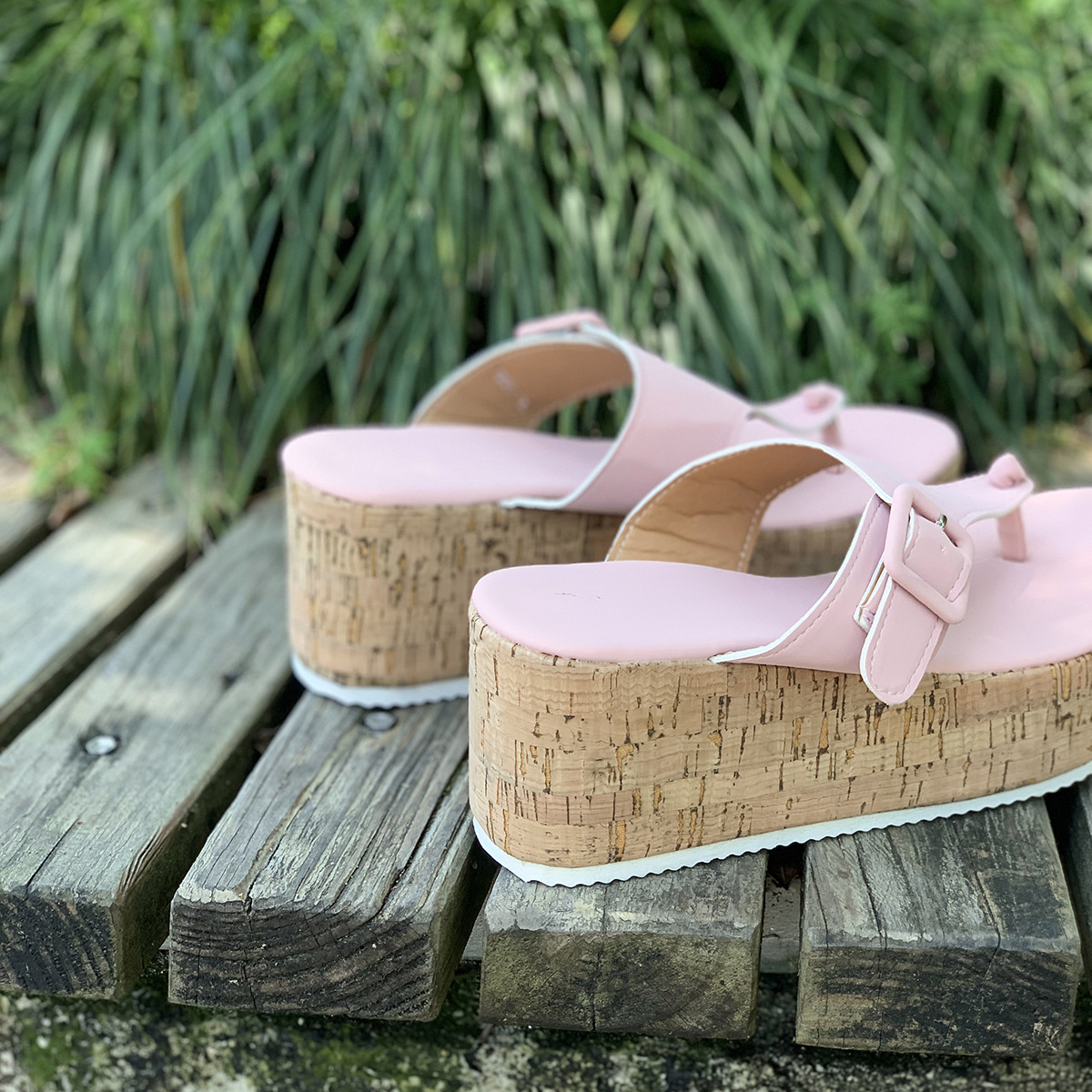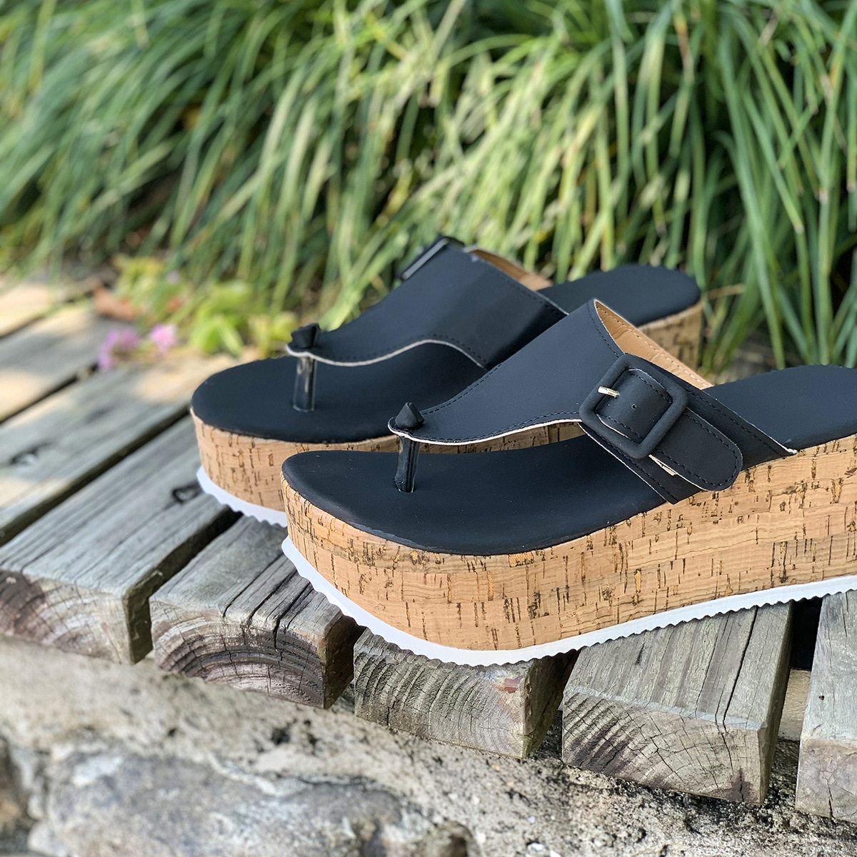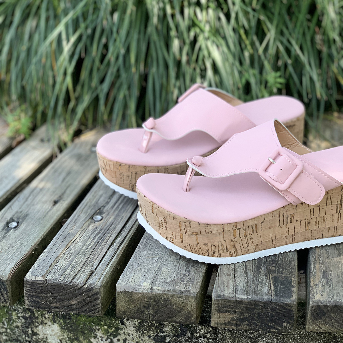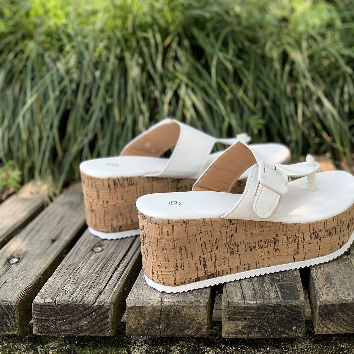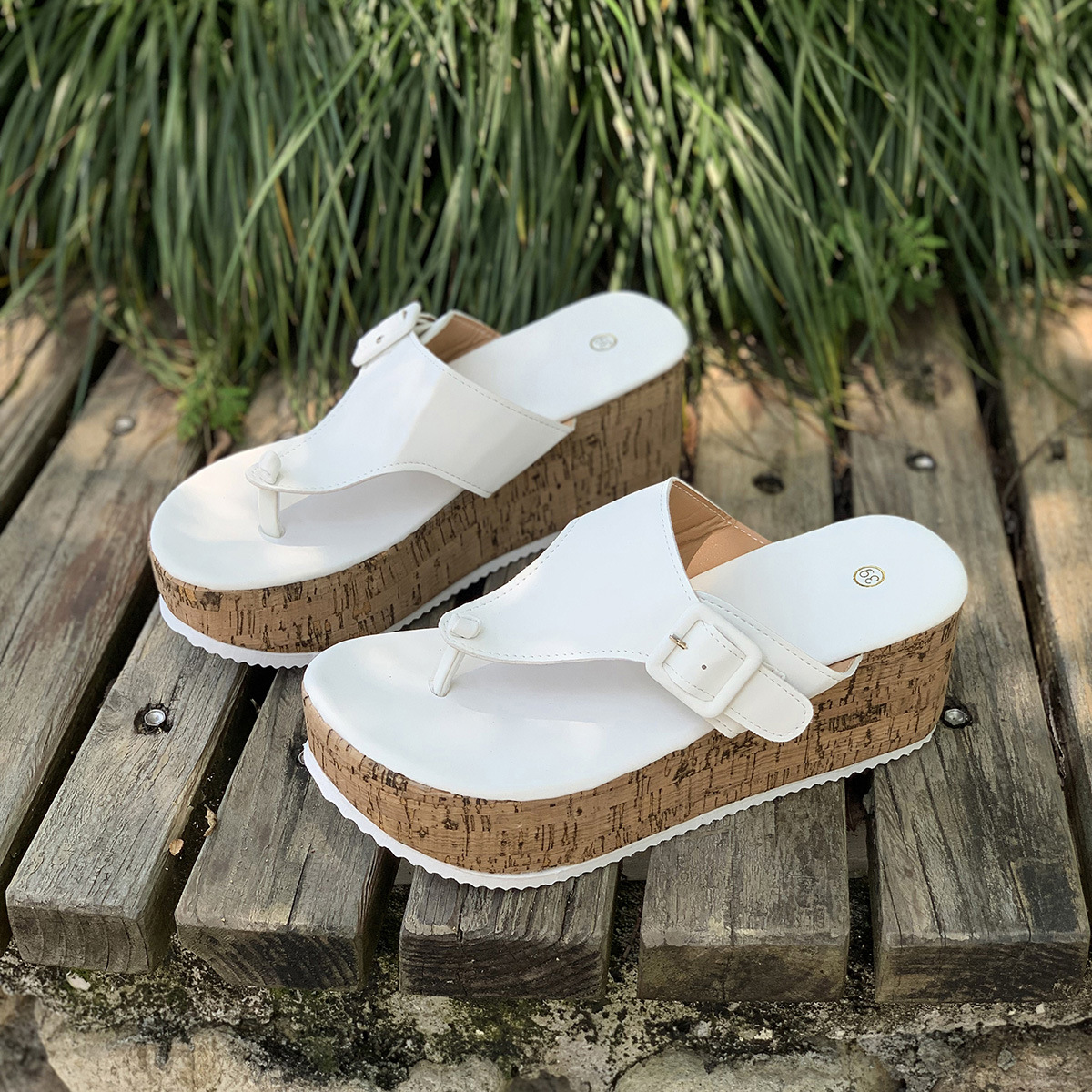 2023 새로운 대형 클램프 Toe 솔리드 컬러 두꺼운 슬리퍼 국경 독립 스탠드 웨지 여성용 버클 피쉬 입 플립 플롭스토어 가기