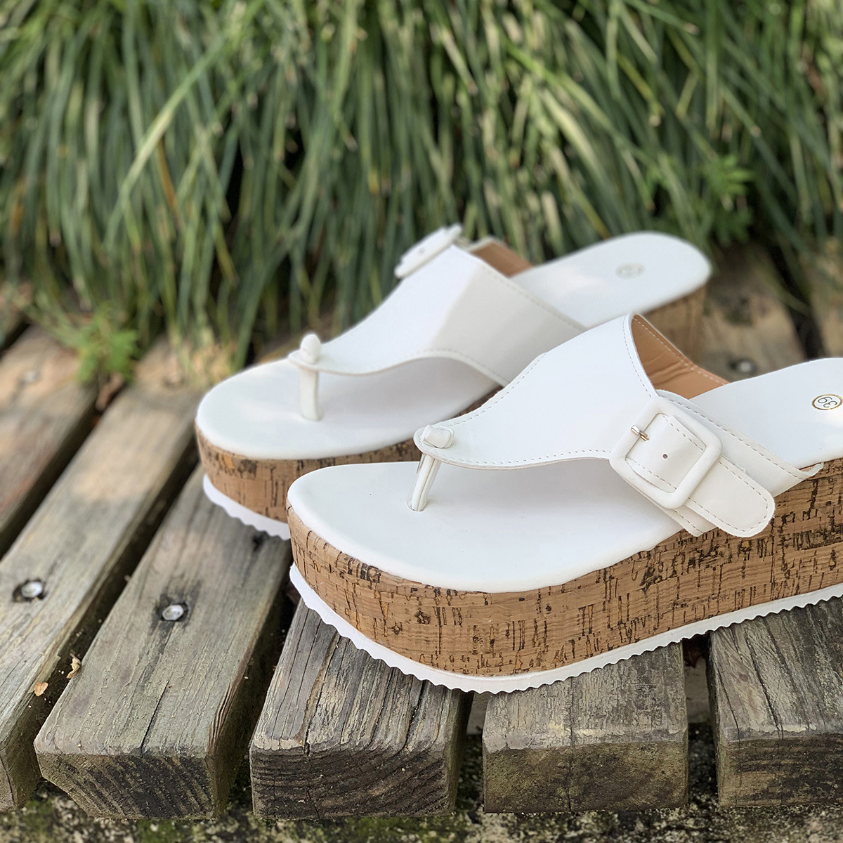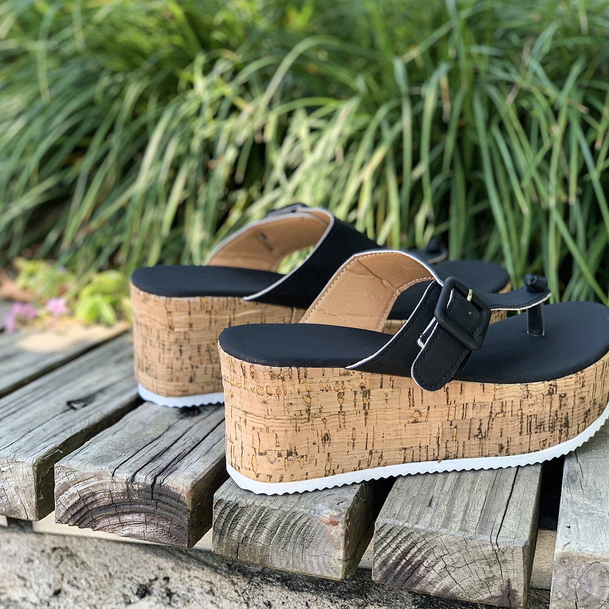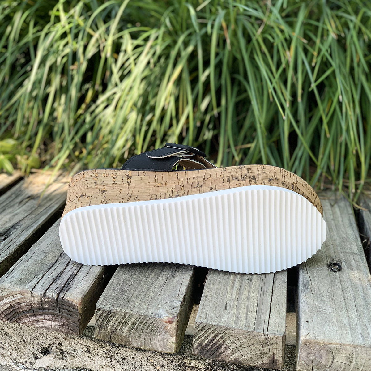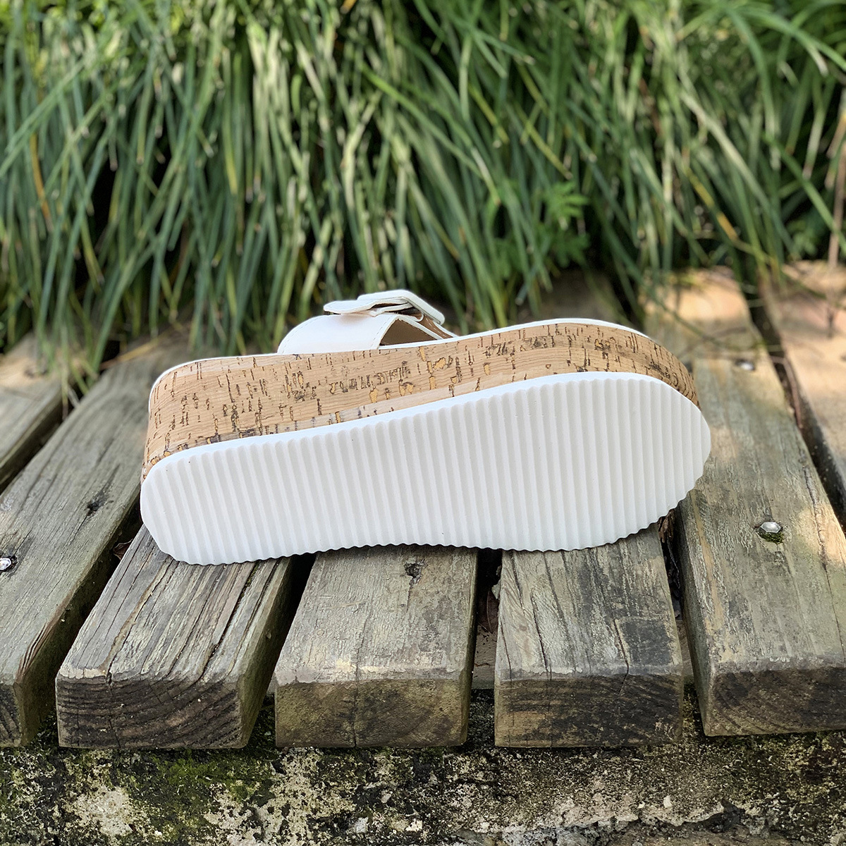 2023 새로운 대형 클램프 Toe 솔리드 컬러 두꺼운 슬리퍼 국경 독립 스탠드 웨지 여성용 버클 피쉬 입 플립 플롭스토어 가기