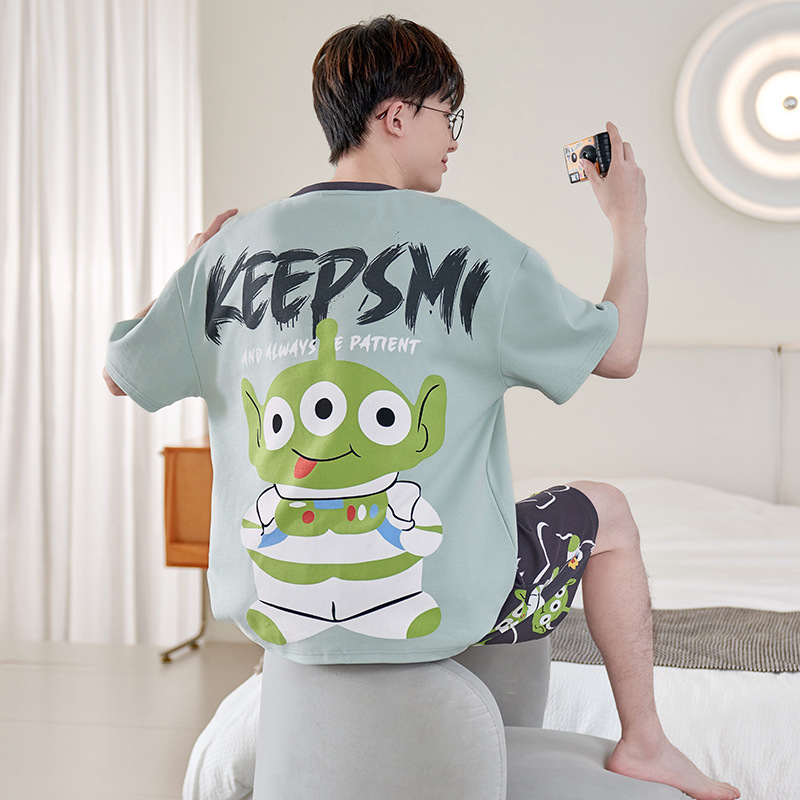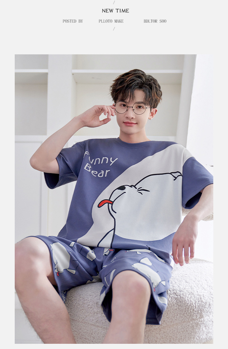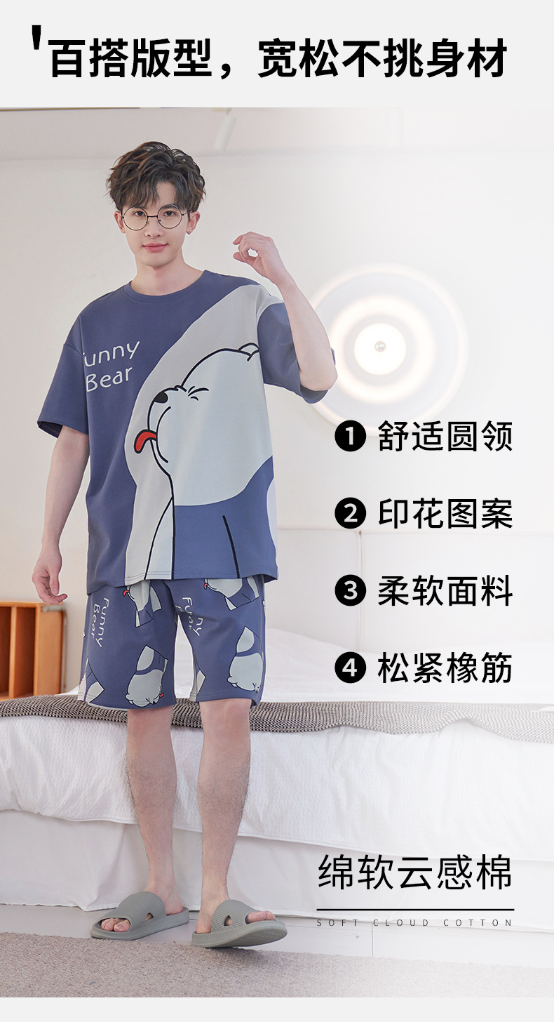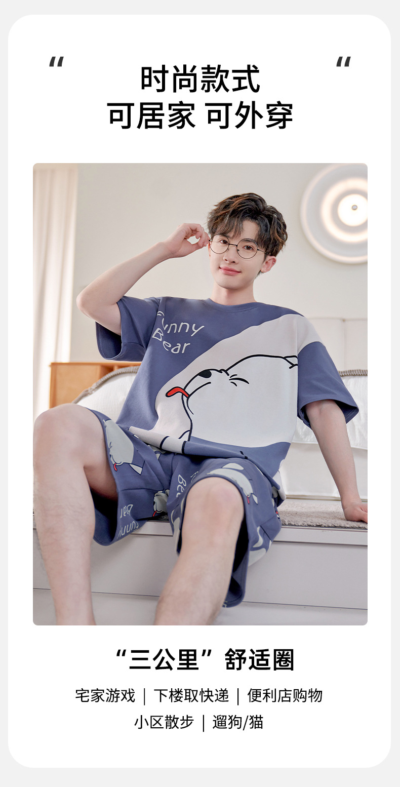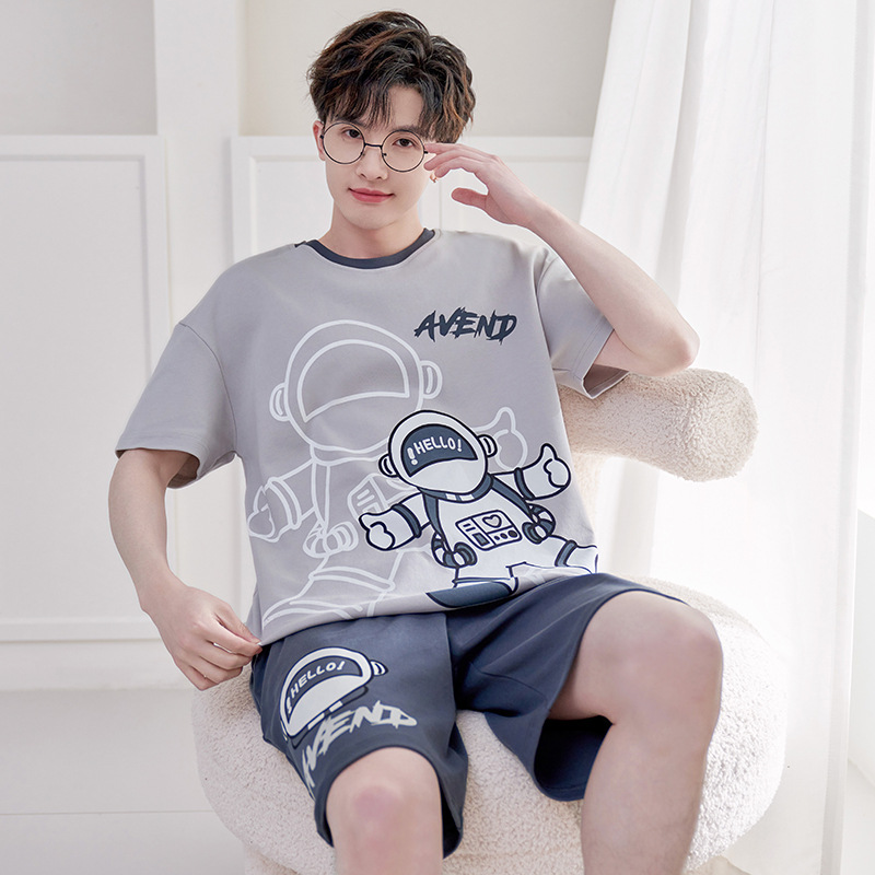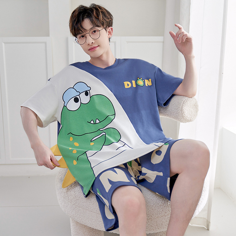 잠옷 남자 여름 면화 반팔 만화 여름 남자 플러스 사이즈 여름 얇은 중학생 나이 많은 아이들스토어 가기