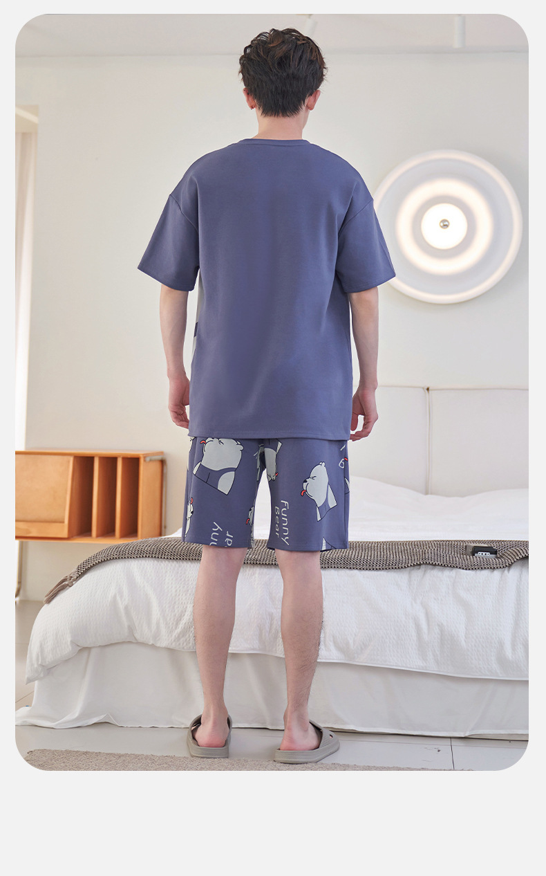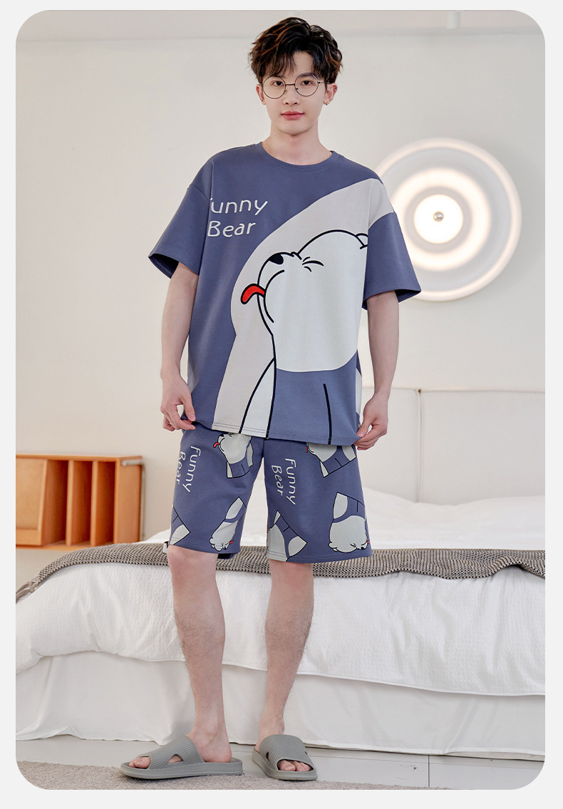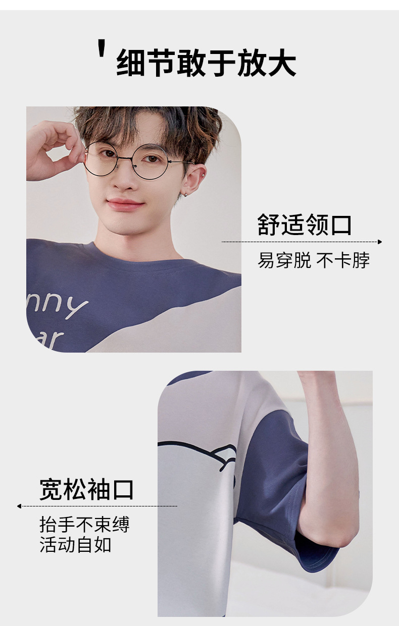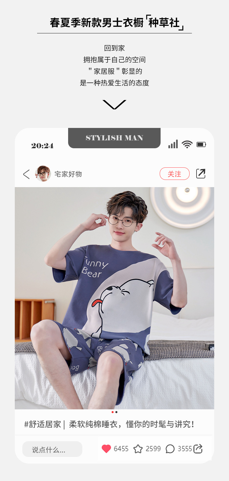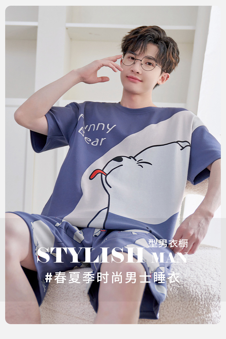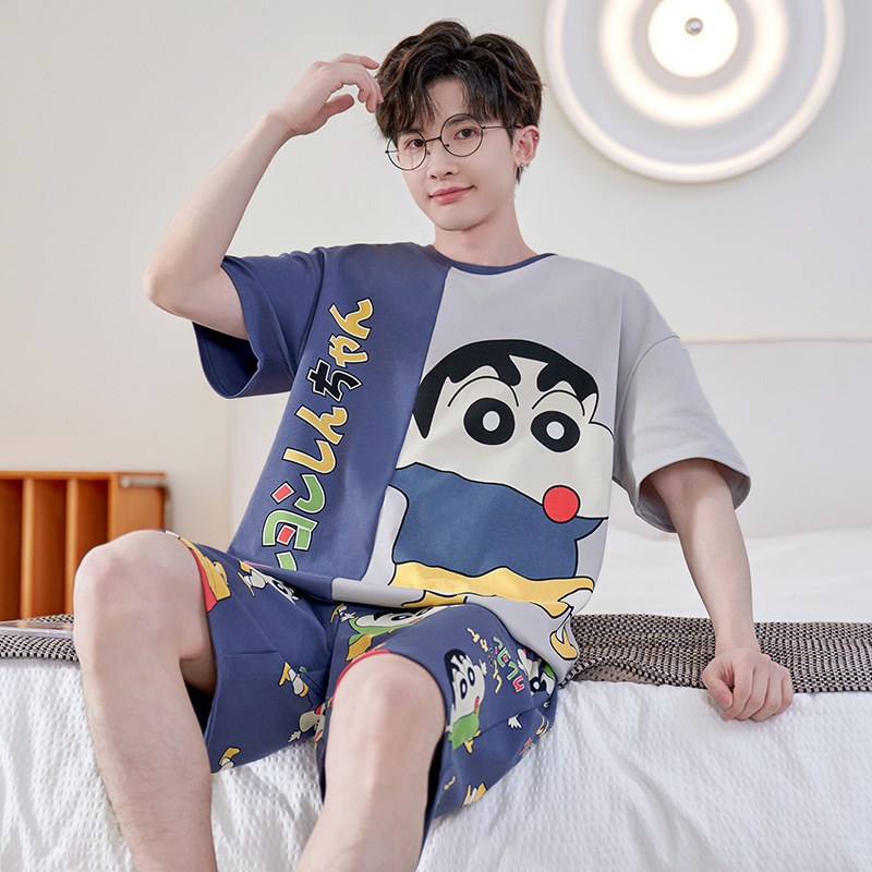 잠옷 남자 여름 면화 반팔 만화 여름 남자 플러스 사이즈 여름 얇은 중학생 나이 많은 아이들스토어 가기
