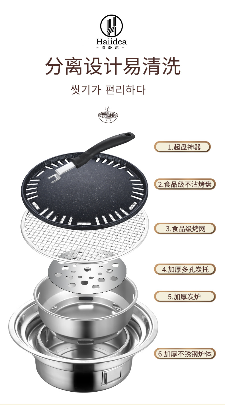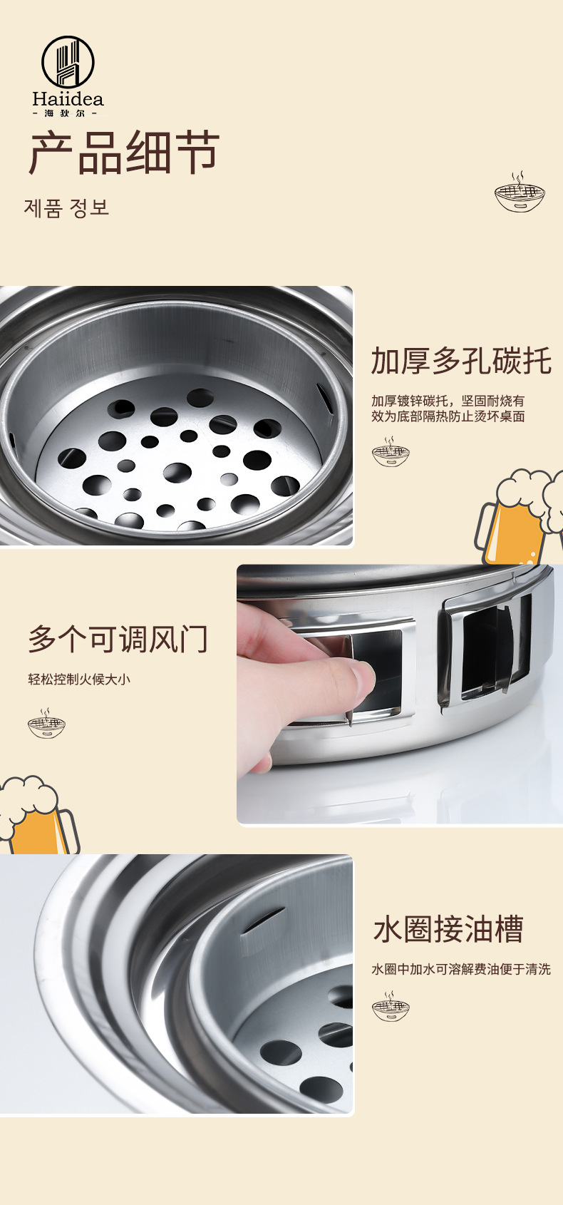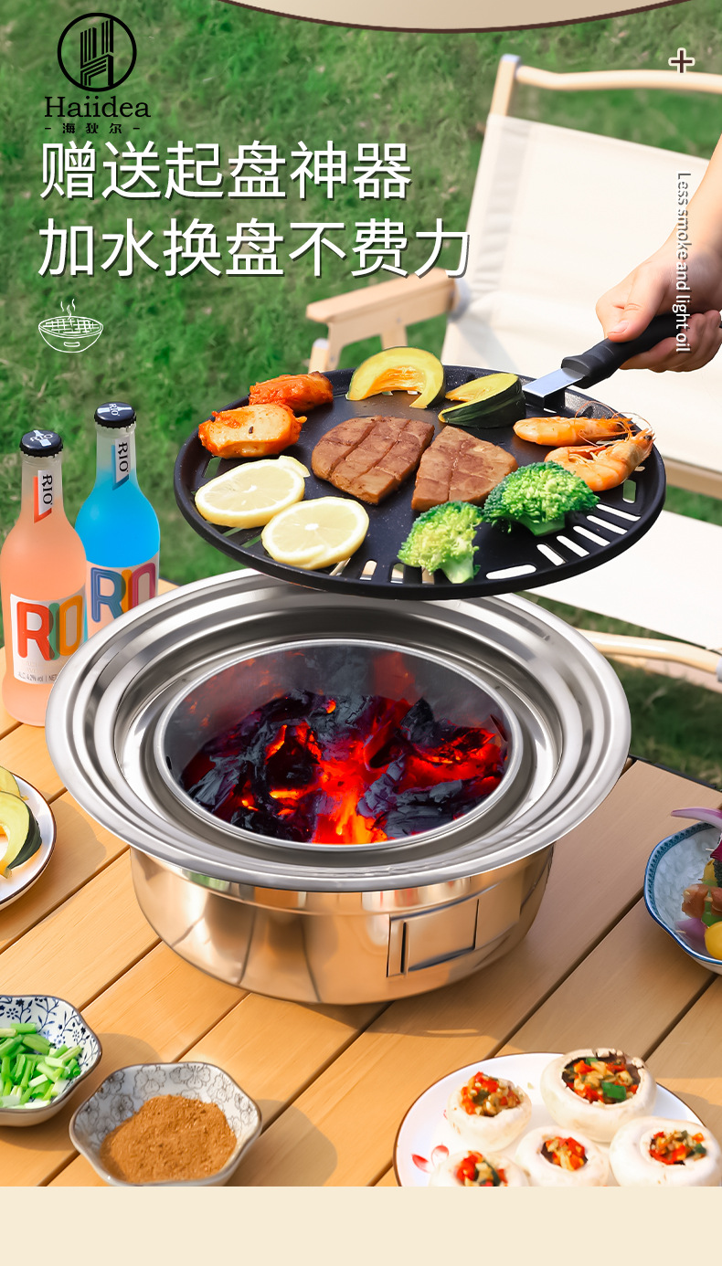 스테인레스 스틸 한국식 바베큐 오븐 상업용 옥외 탄소 오븐 가정용 무연 숯 바베큐 오븐 휴대용 끓는 차