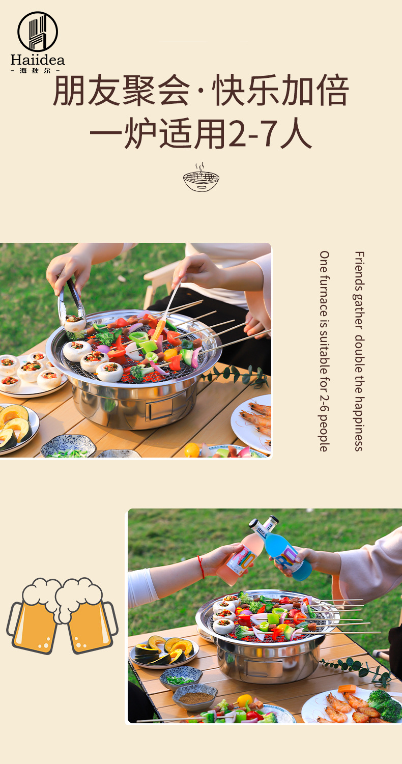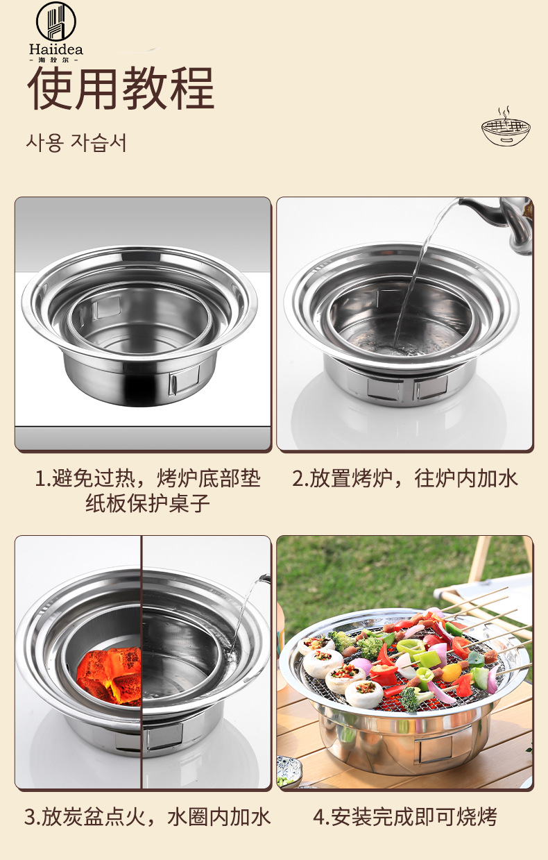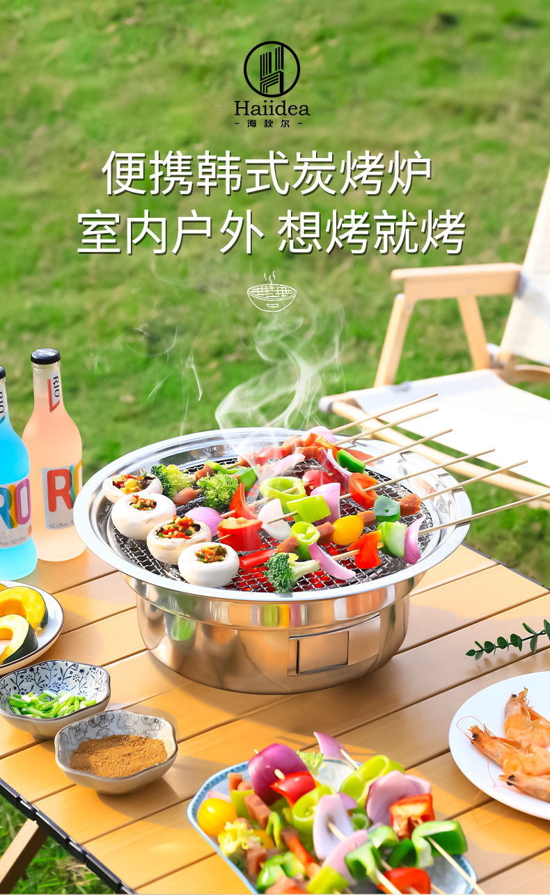 스테인레스 스틸 한국식 바베큐 오븐 상업용 옥외 탄소 오븐 가정용 무연 숯 바베큐 오븐 휴대용 끓는 차
