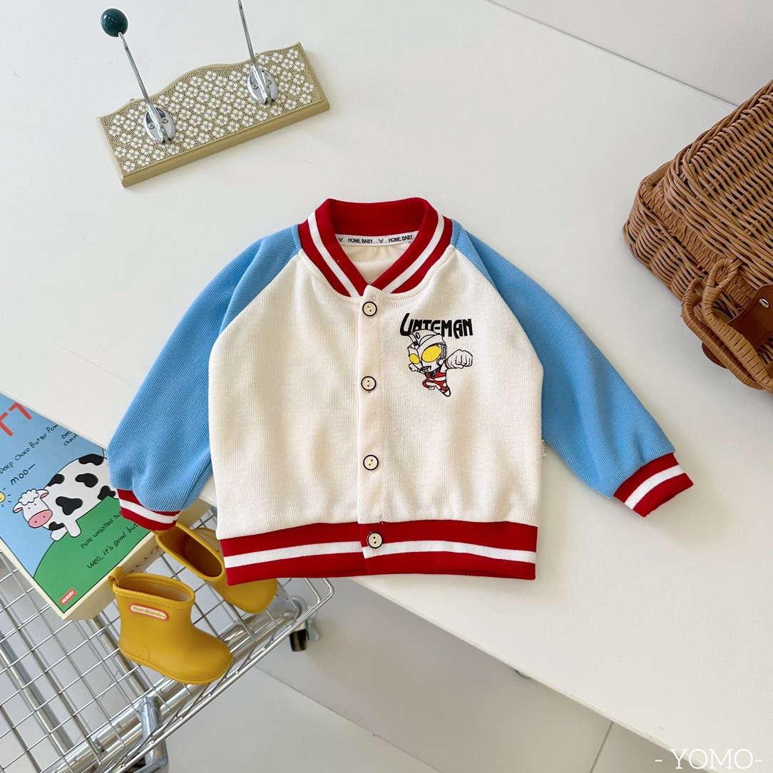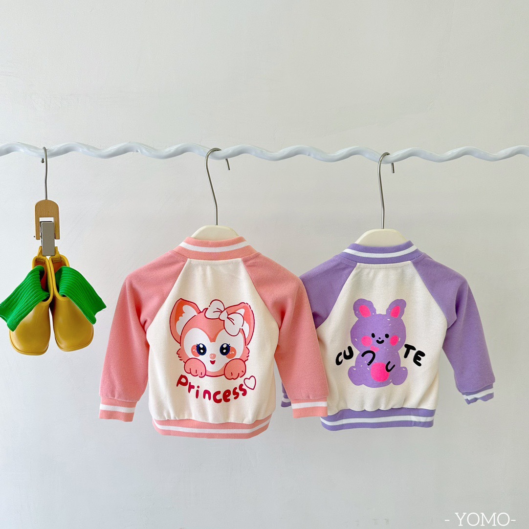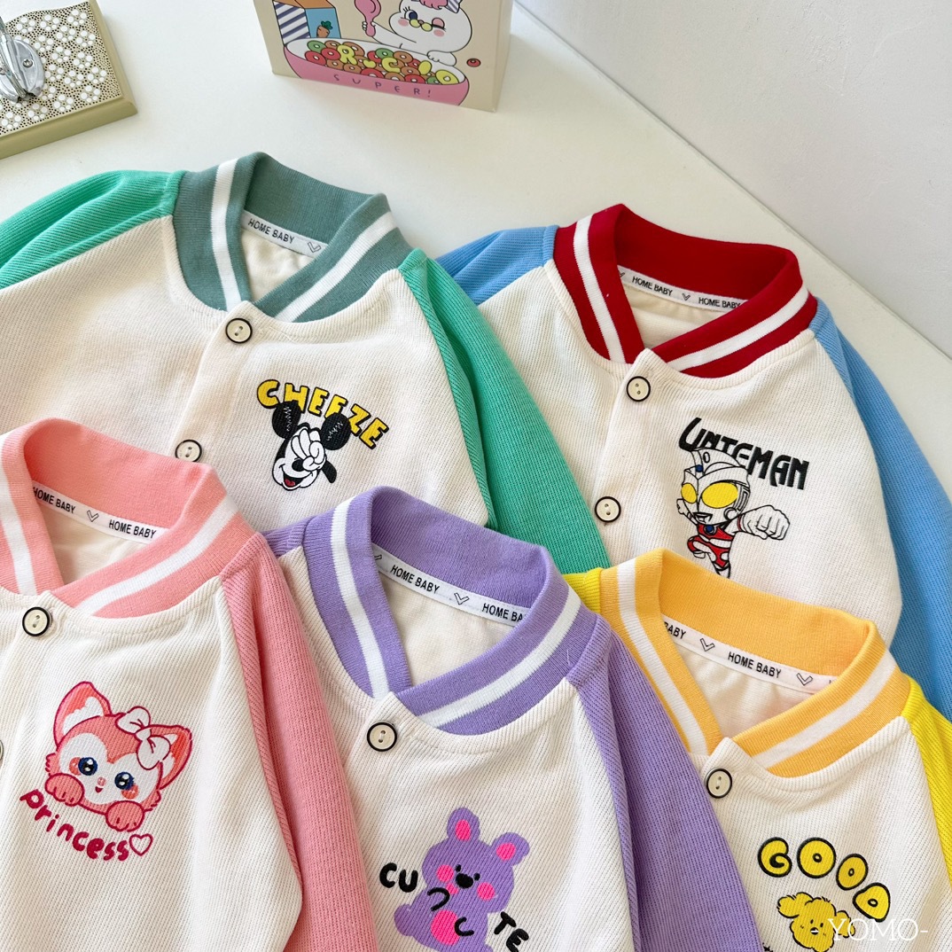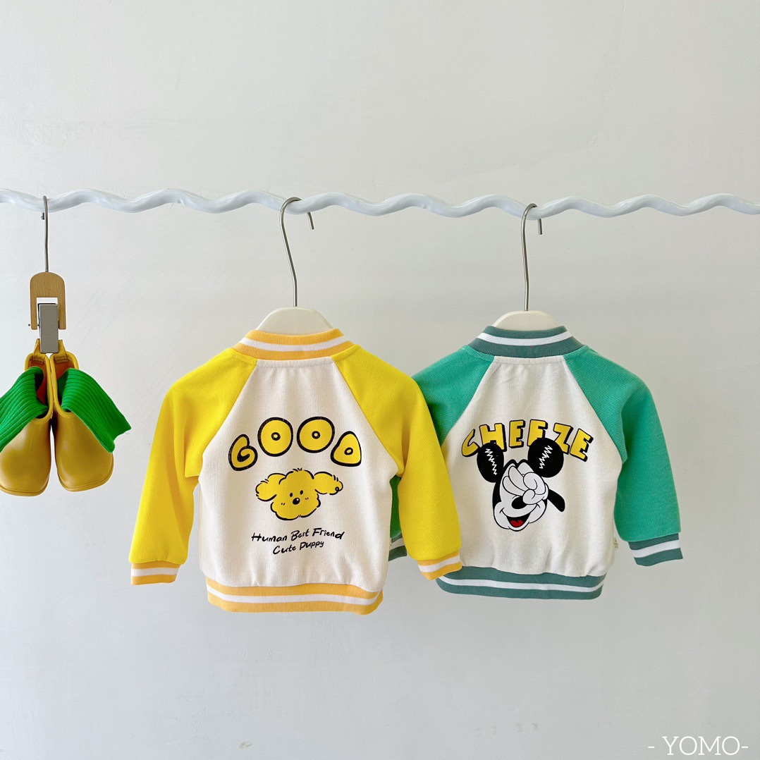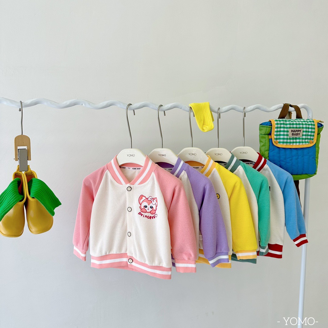 오미아오 콩 봄 가을 어린이 야구 세트 코트 소년 소녀 칼라 자켓 어린이 의류 중소형 어린이 카디건 탑스토어 가기