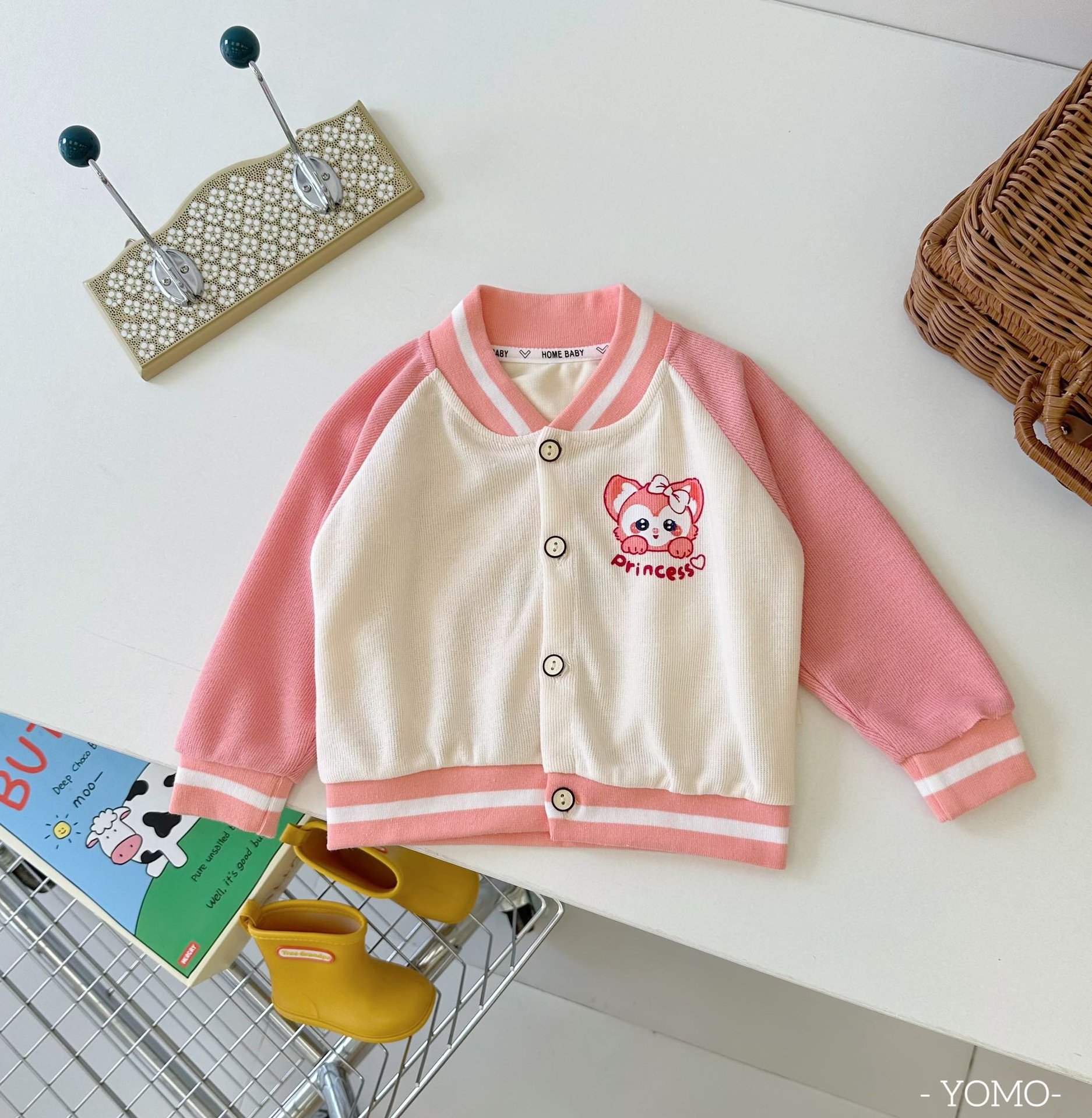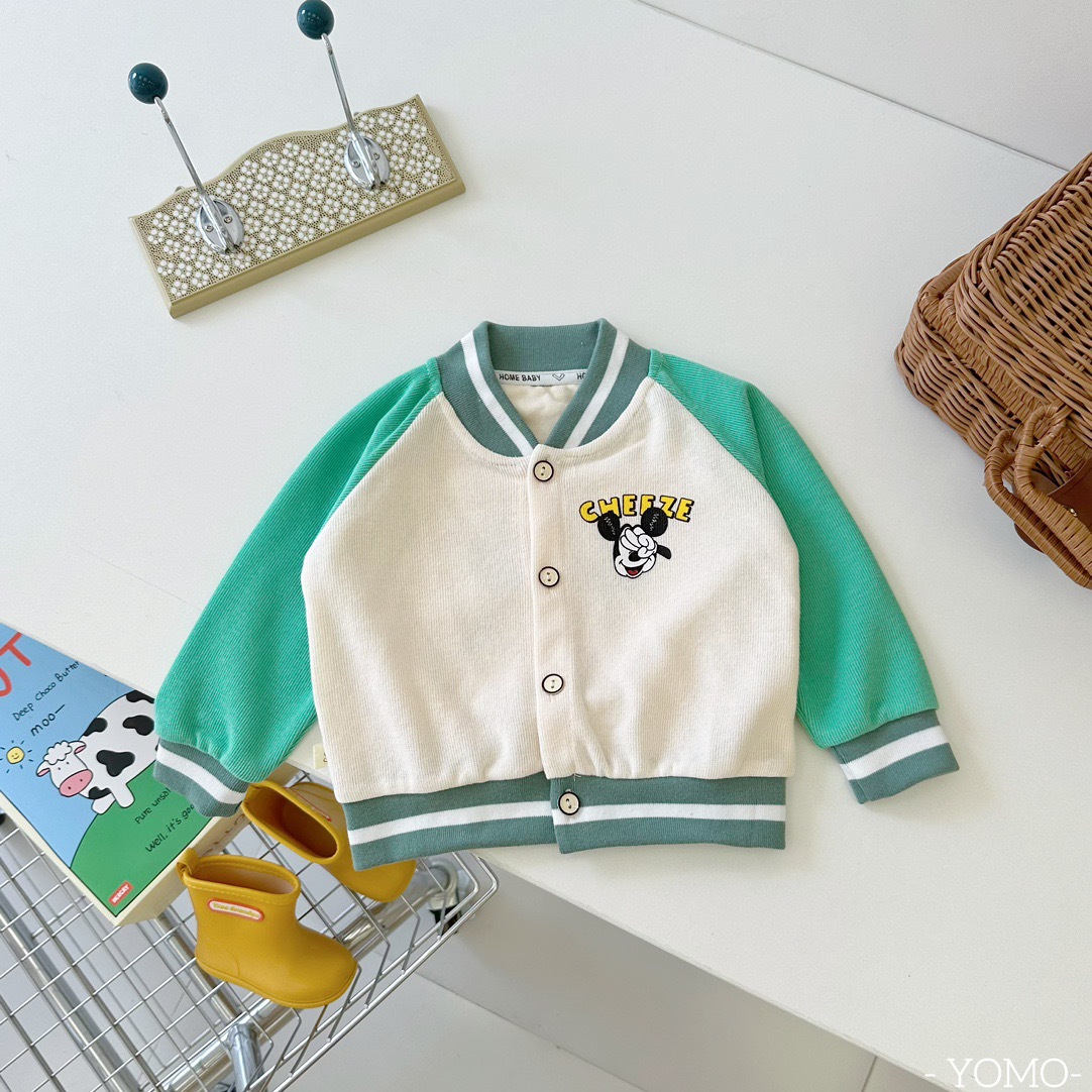 오미아오 콩 봄 가을 어린이 야구 세트 코트 소년 소녀 칼라 자켓 어린이 의류 중소형 어린이 카디건 탑