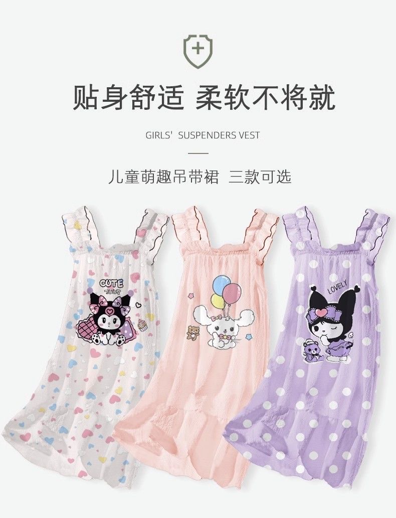 여아 잠옷 얇은 모델 2024 순면 엄마와 딸 커플룩 여아용 스커트 아동용 멜빵 잠옷 여름 A라인 스커트
