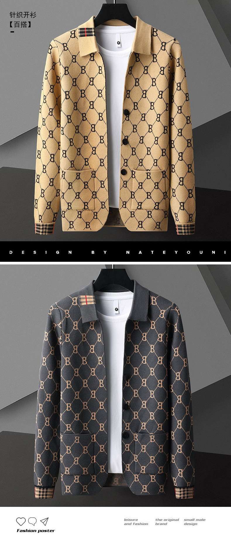 재고 유럽 역 패션 패션 브랜드 인기 가을 새로운 니트 카디건 남성 스웨터 슬림 캐주얼 다용도스토어 가기