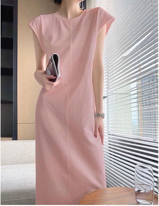화이트 니치 디자인 크루 넥 반팔 티셔츠 원피스 여성 2024 년 여름 새로운 세련된 고기 커버