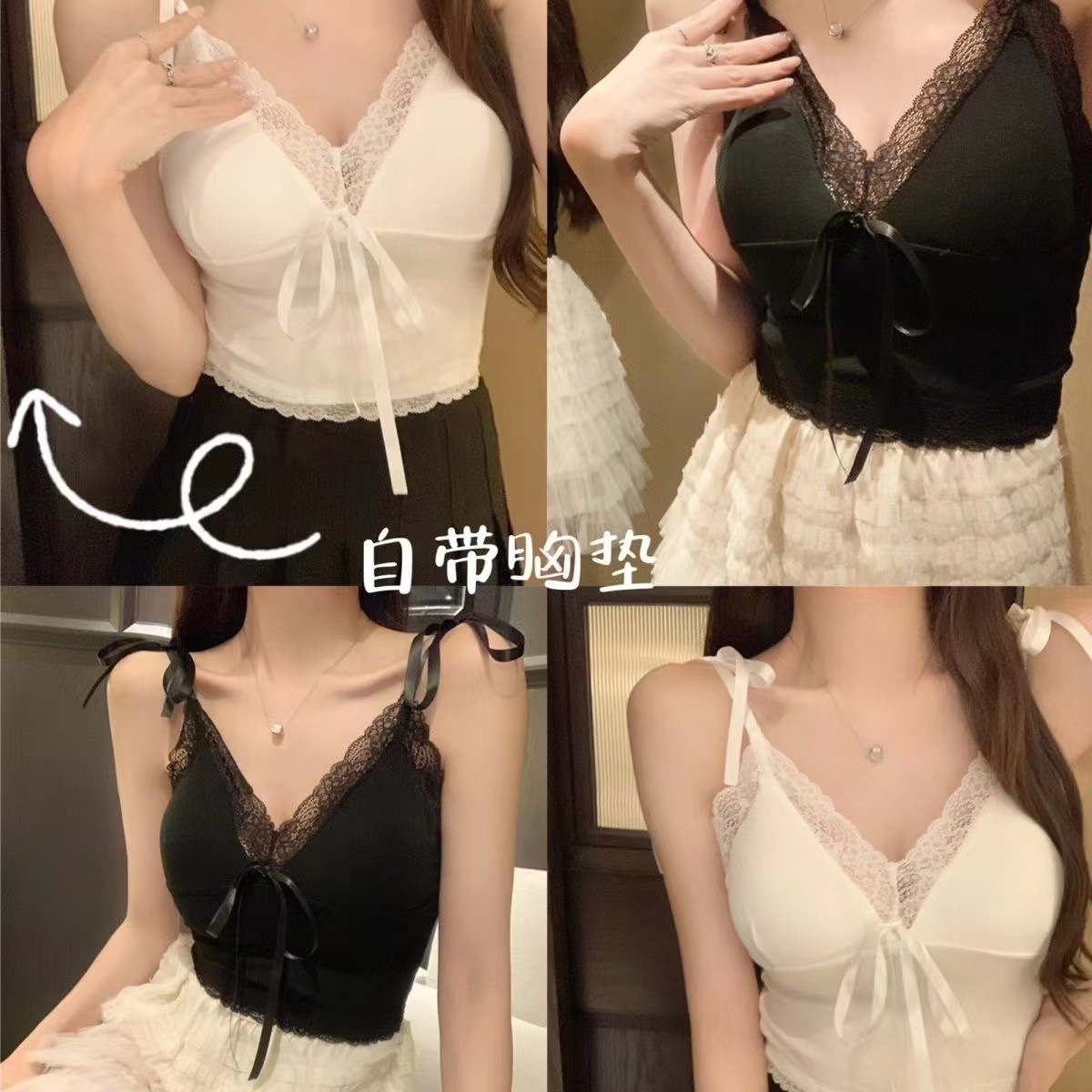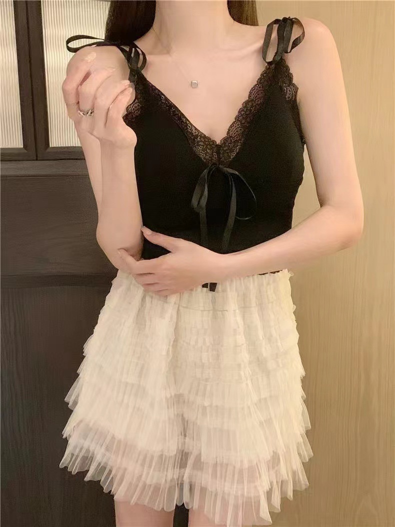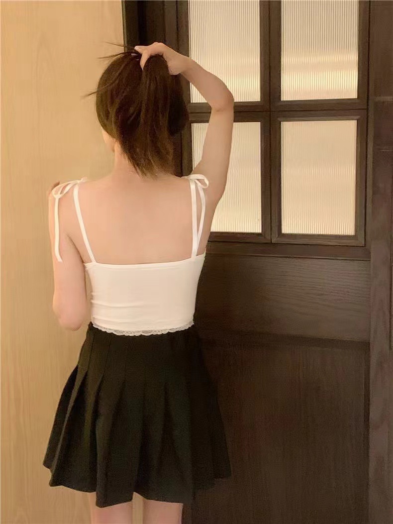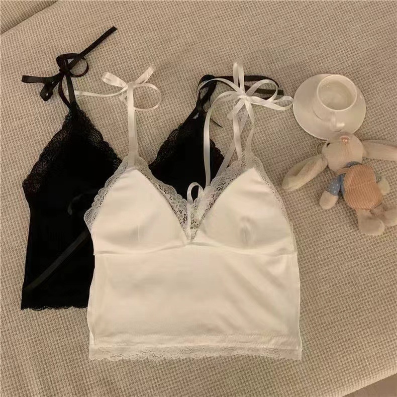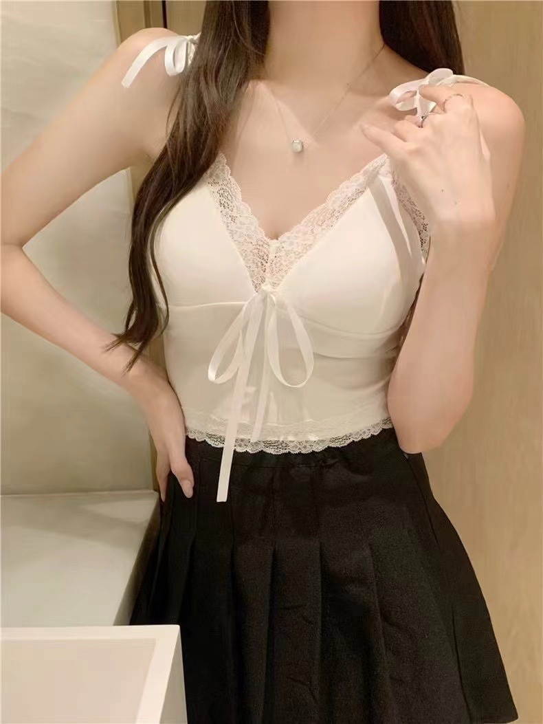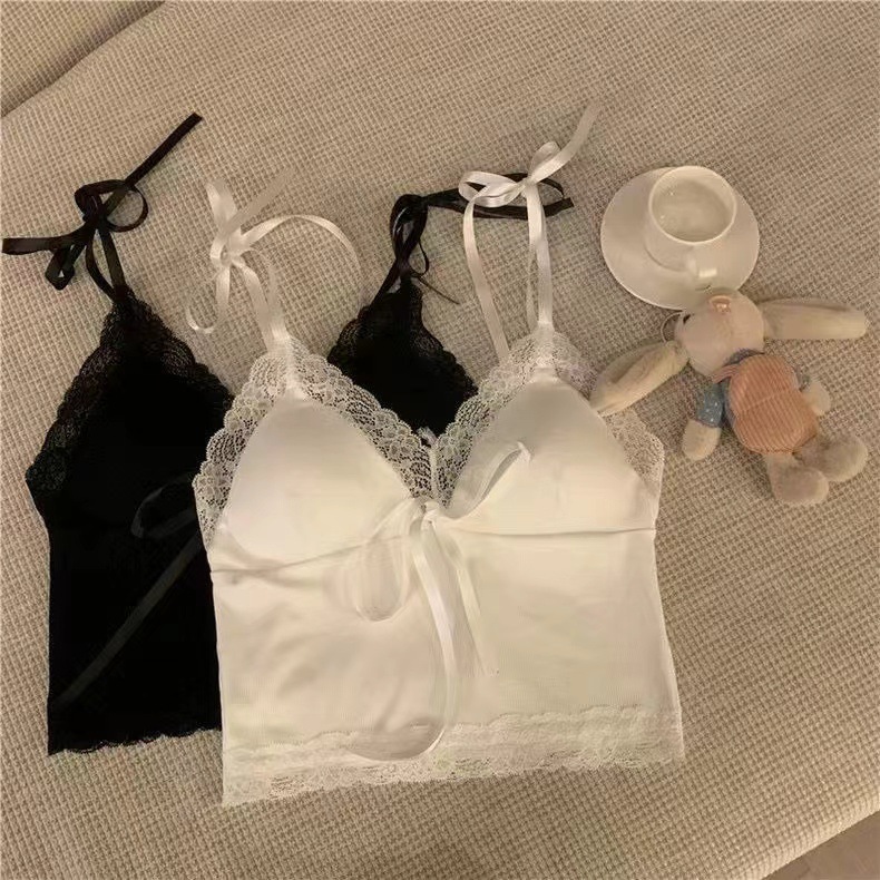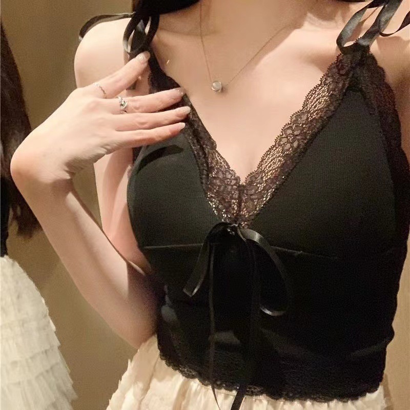 2024 새로운 순수한 욕망 스타일 레이스 스티칭 캐미솔 여성의 봄과 여름 나비 레이스 업 내부 짧은 탑스토어 가기