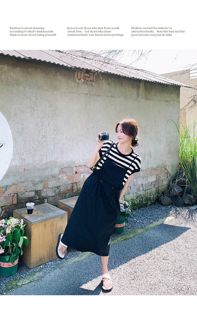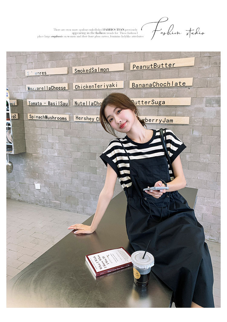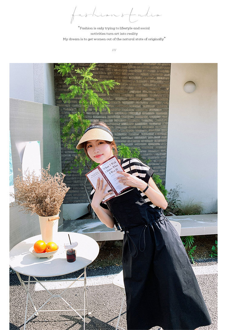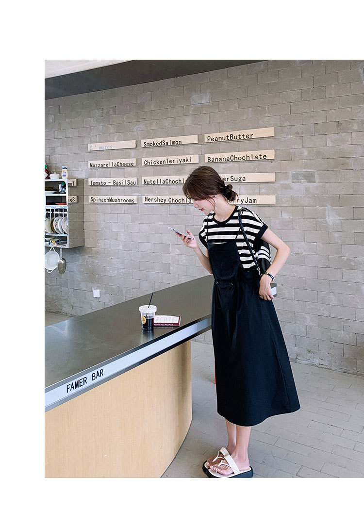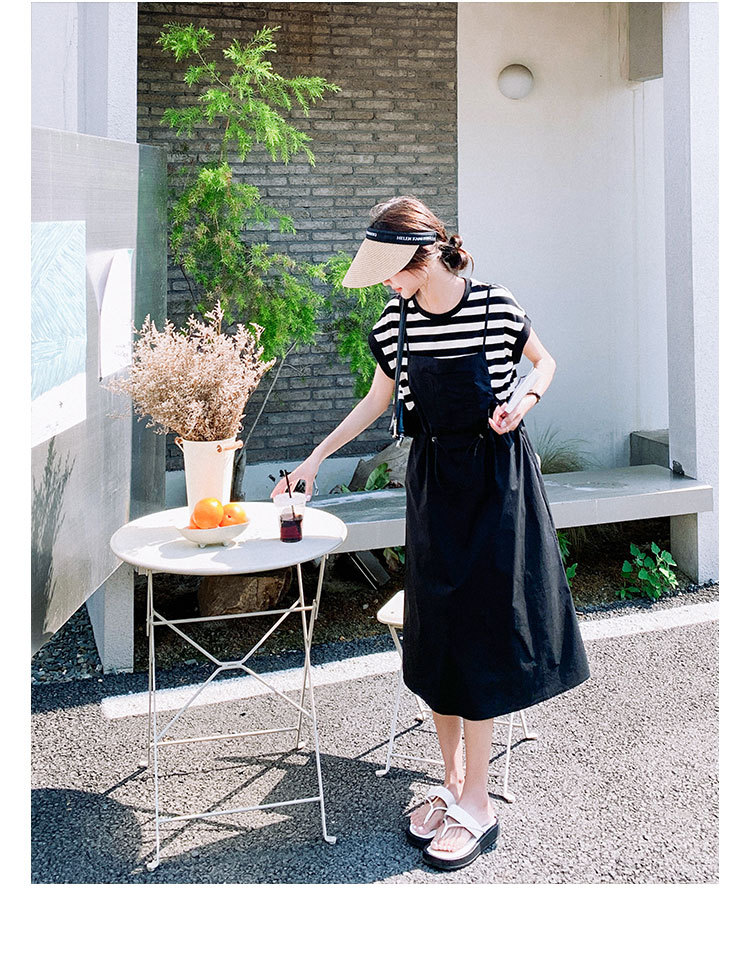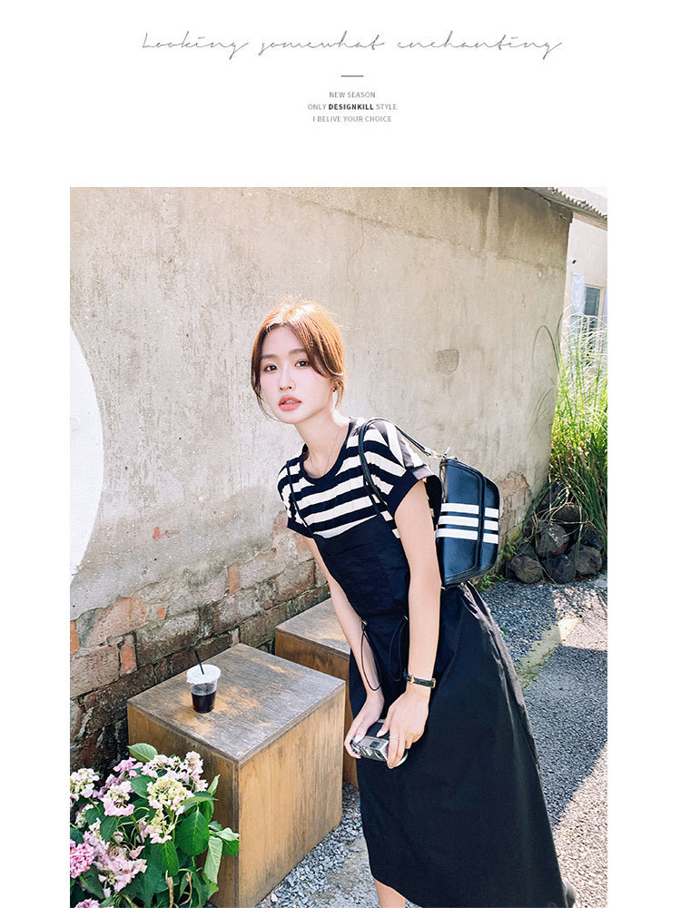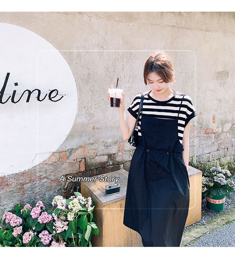 검은 가짜 투피스 원피스 여성 여름 프랑스 패션 캐주얼 독특한 세련된 디자인 줄무늬 티셔츠 원피스스토어 가기