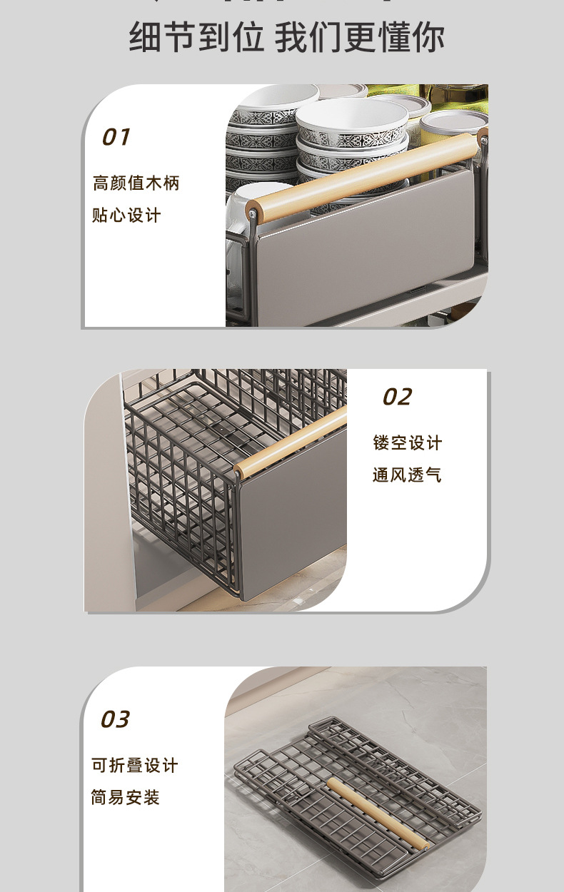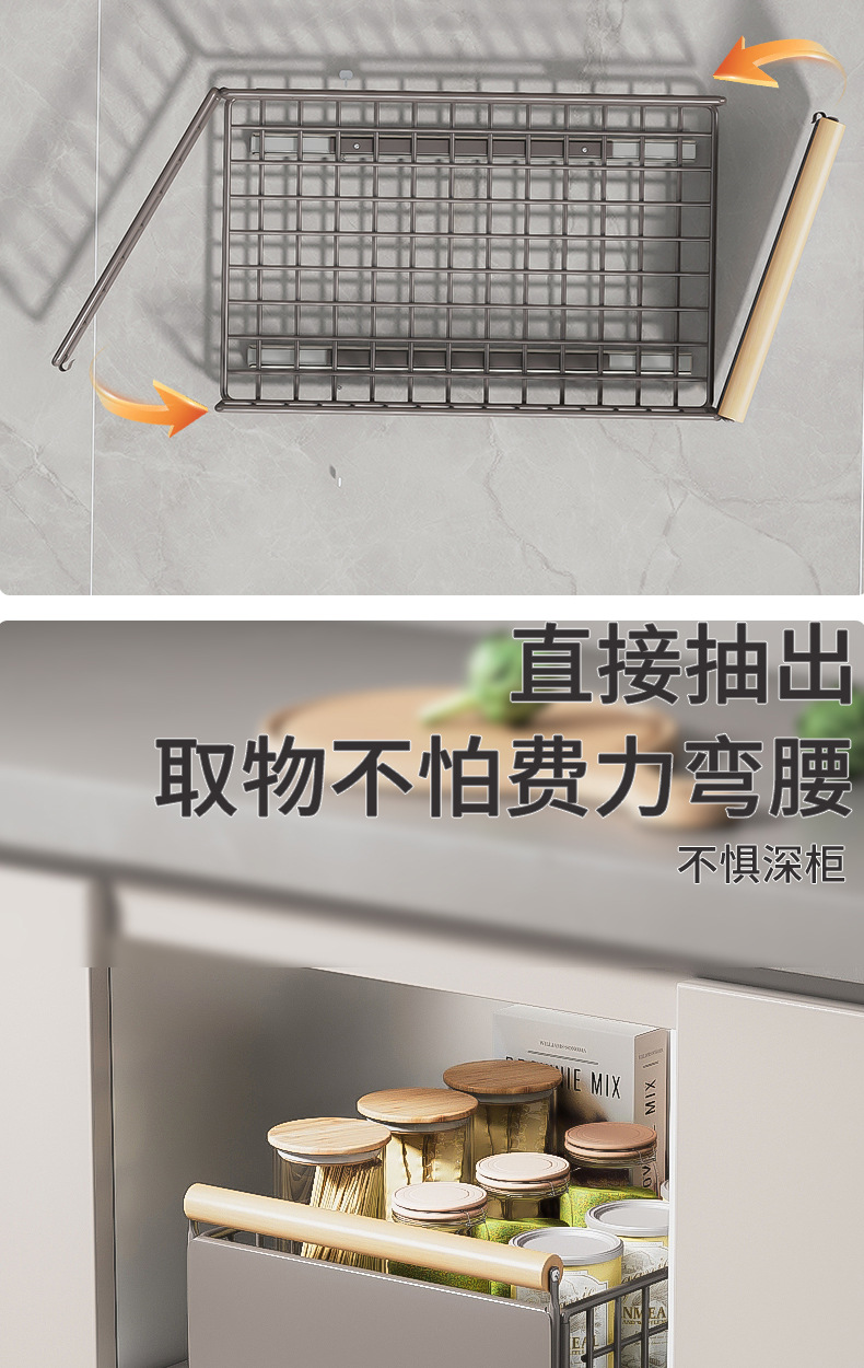• 대형*높은 풀아웃 바스켓*업그레이드된 슬라이드 레일-건 그레이