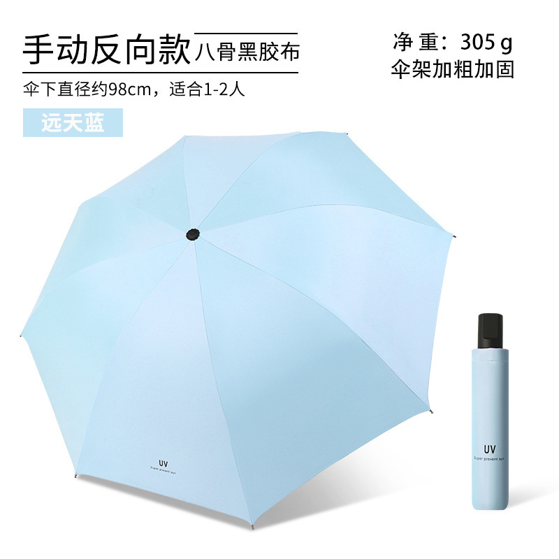 • 스카이 블루-8 뼈 검은 접착제 매뉴얼 써니 우산