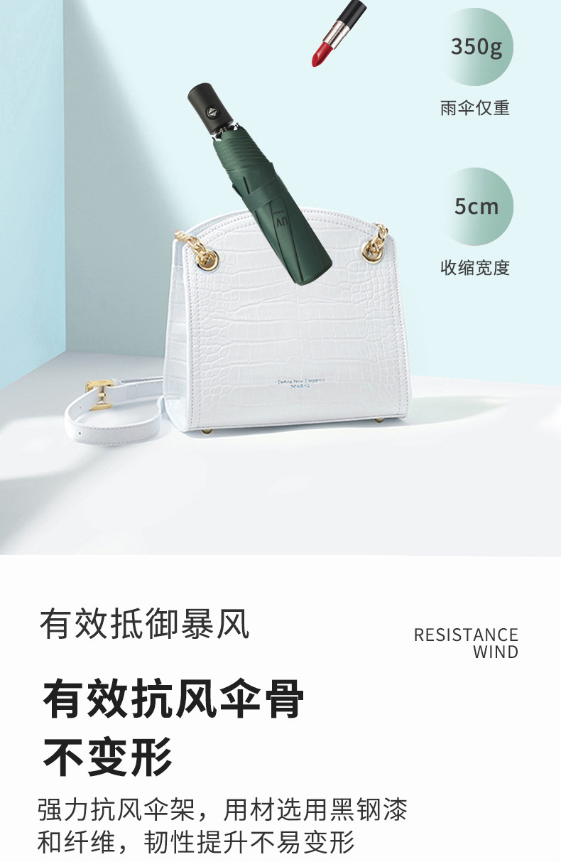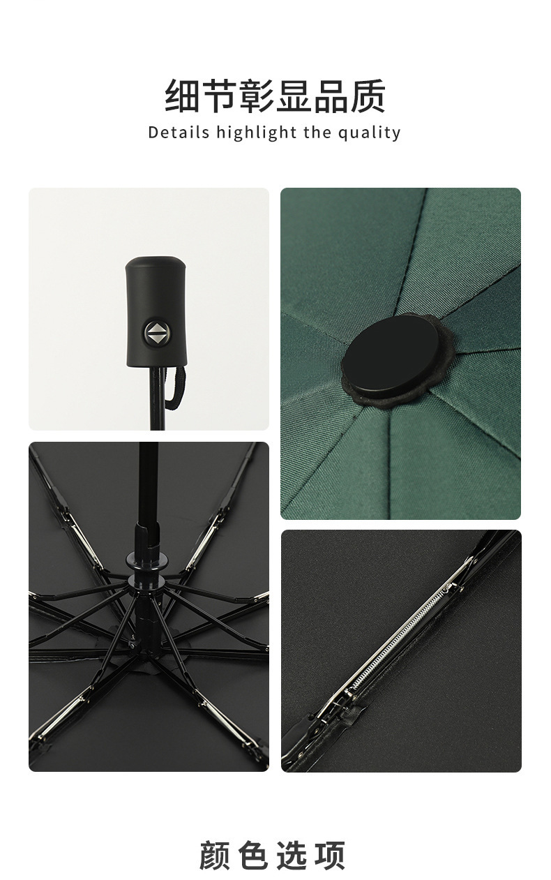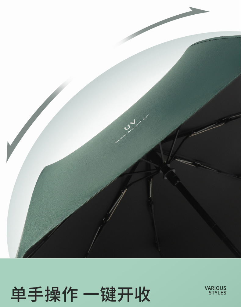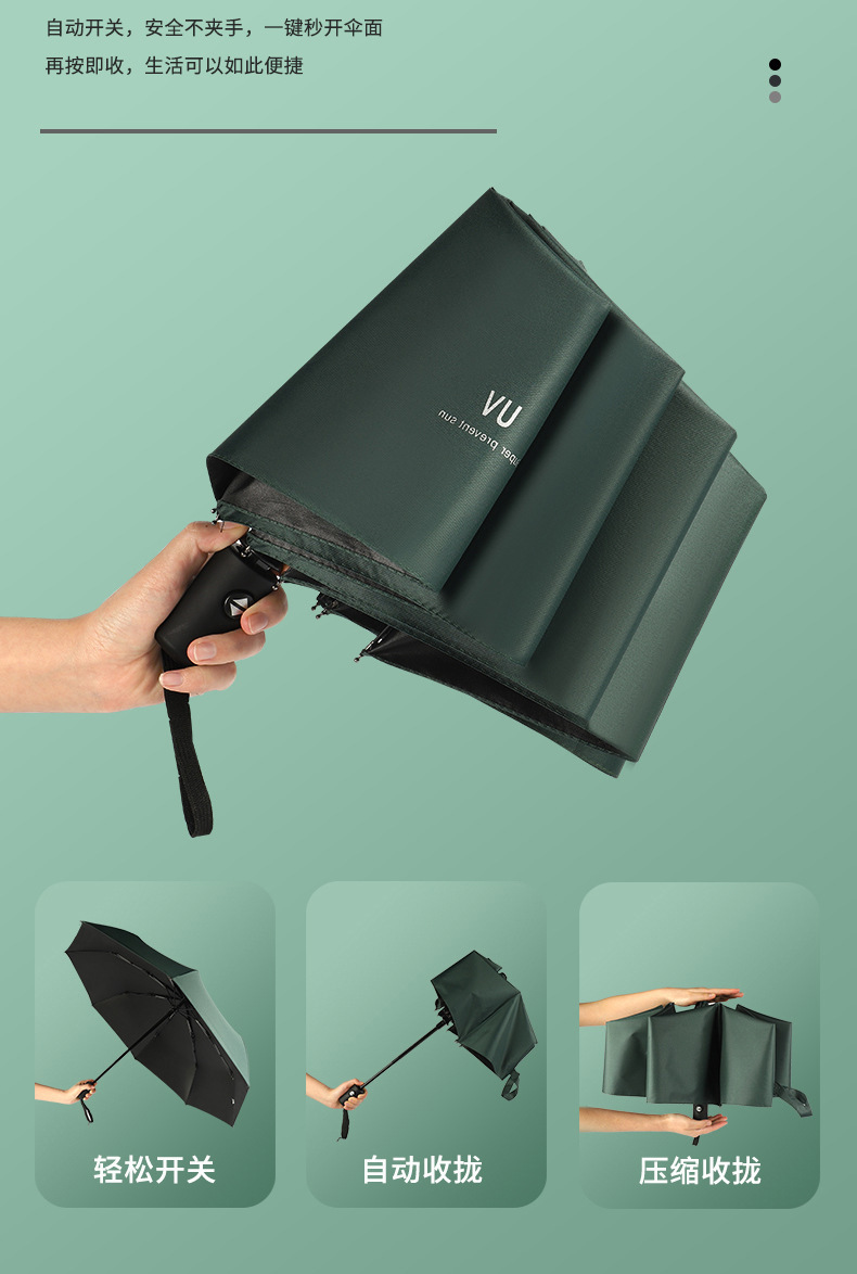 • 다크 그린-8 뼈 검은 접착제 자동 써니 우산