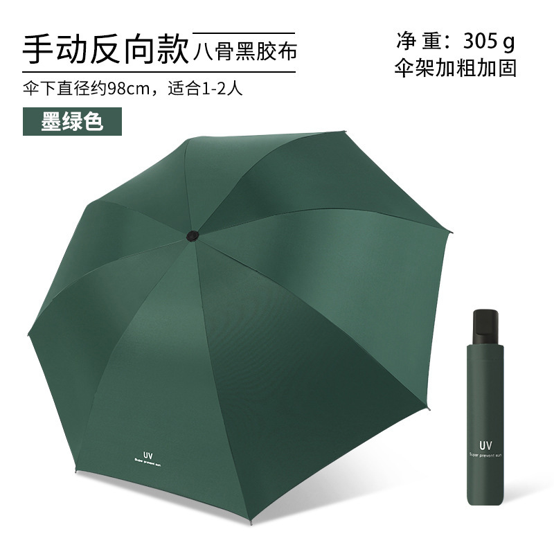 • 다크 그린-8 뼈 검은 접착제 수동 써니 우산